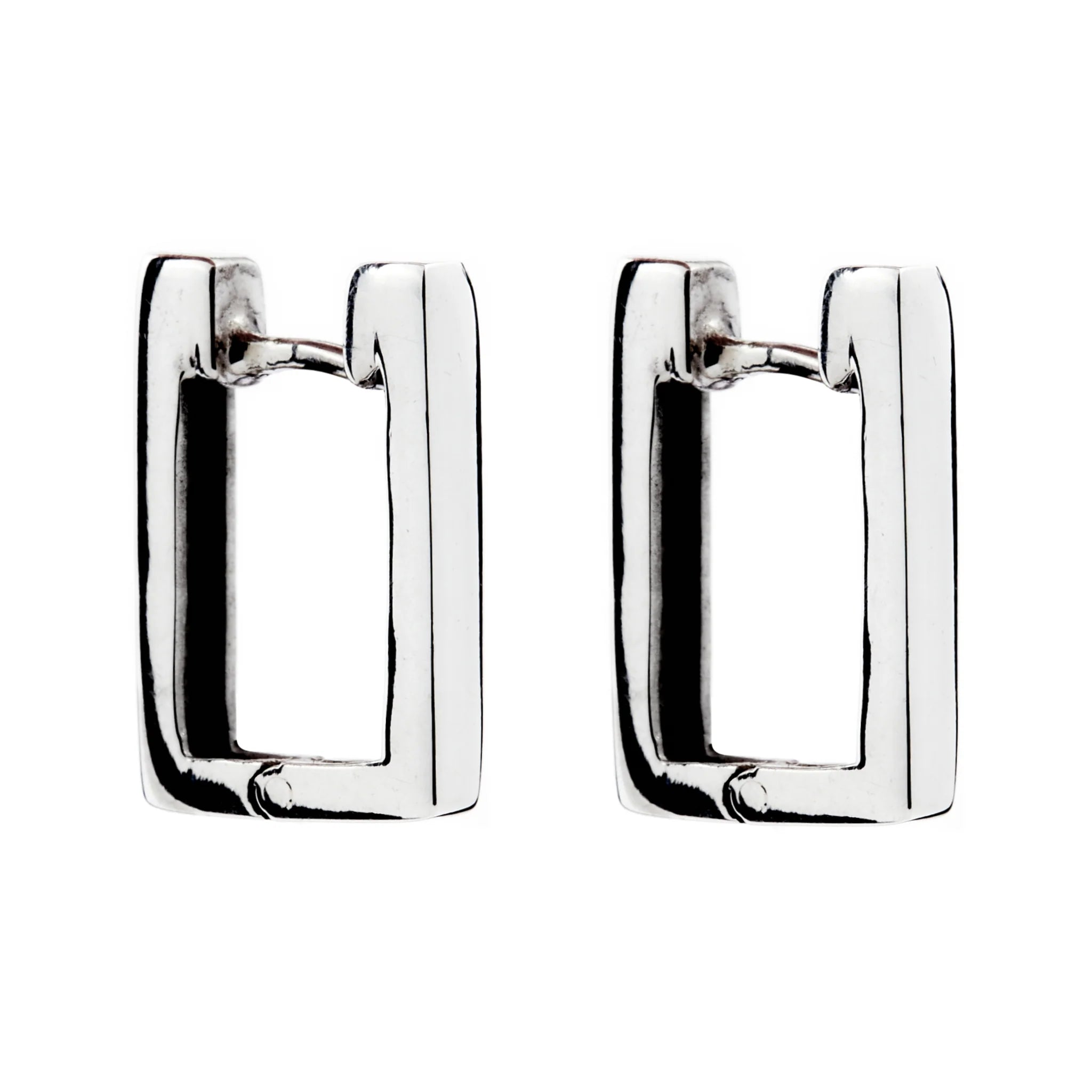 All silver shiny rectangular huggies, a perfect everyday earring.