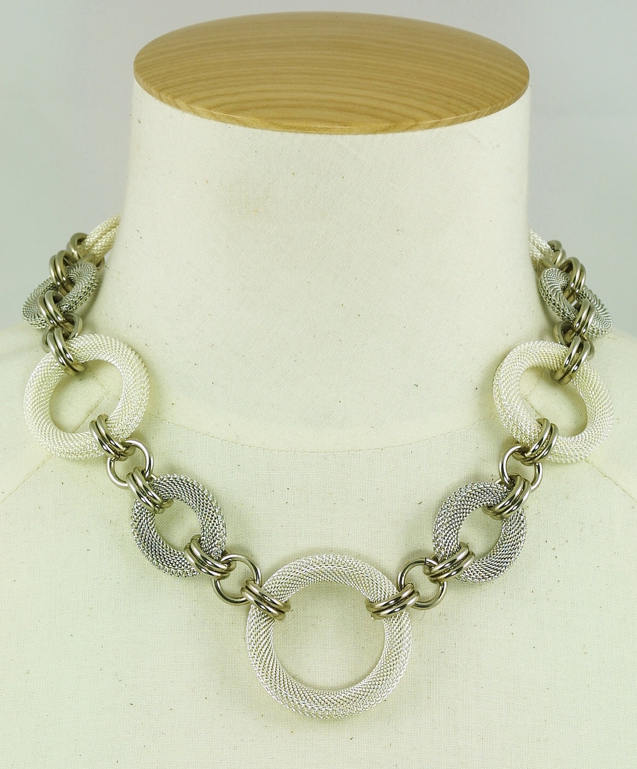 Made in New York, this metallic mesh necklace features Circular Mesh Discs.