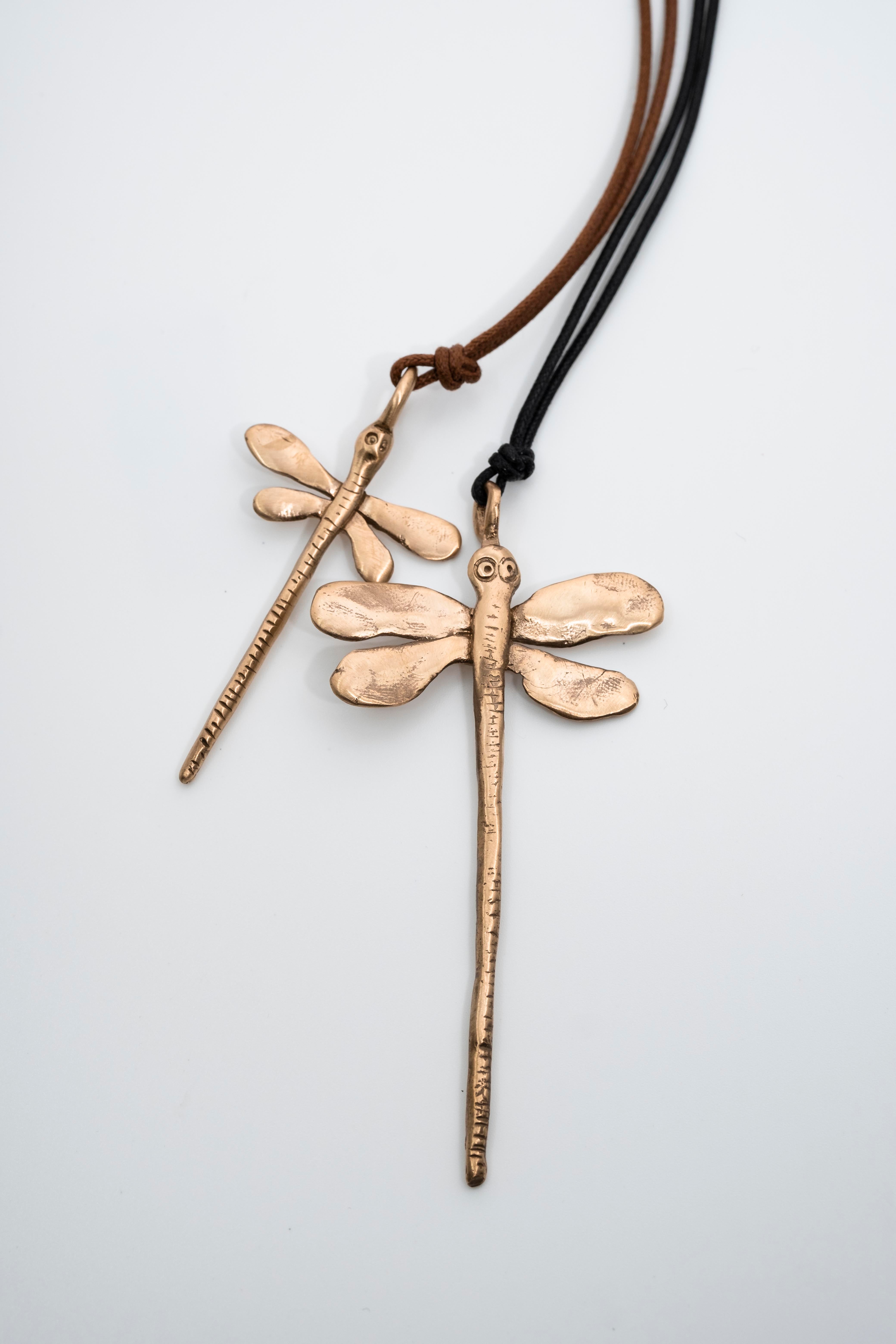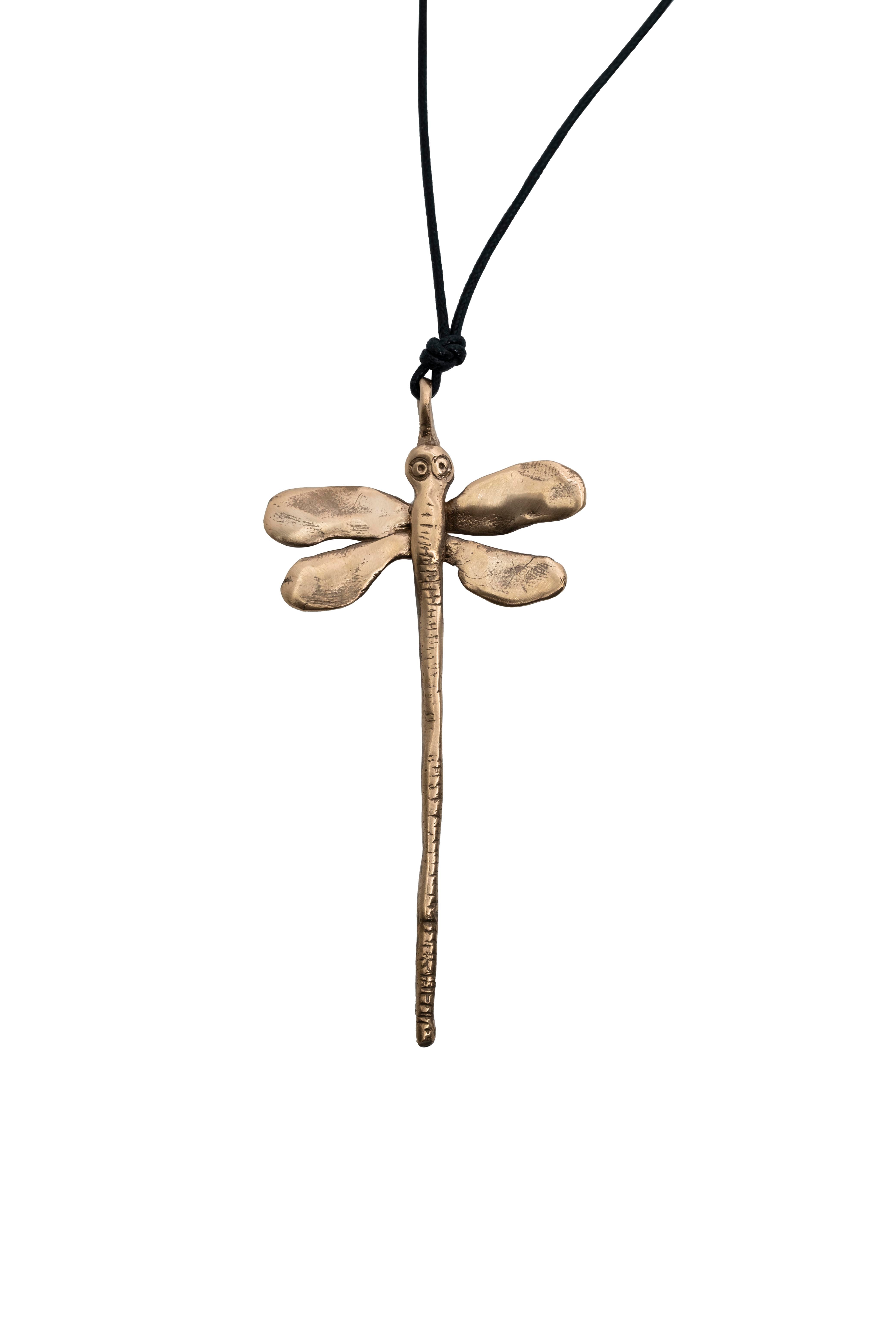Libellula Necklace Large Pendant on Leather (Dragonfly) by Pesci Che Volano