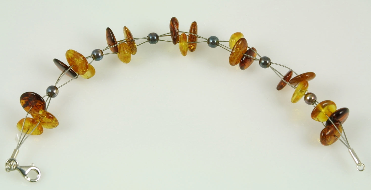 This simple bracelet features champagne, butterscotch, and cognac amber from Poland.