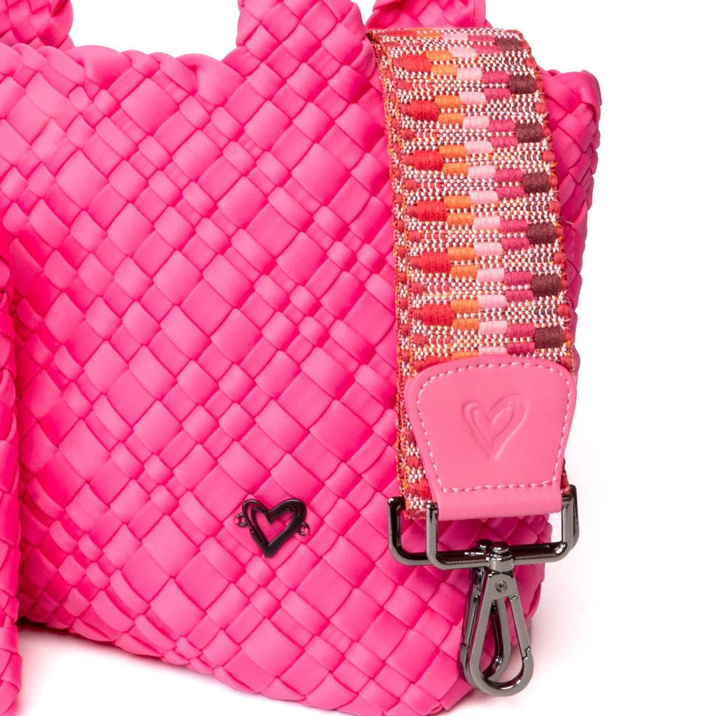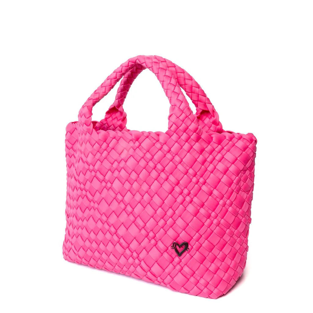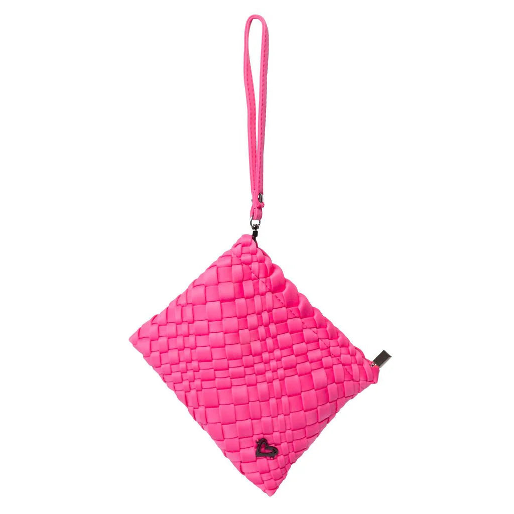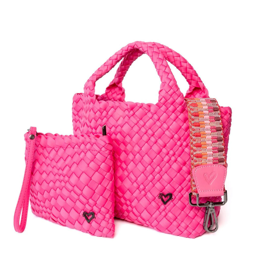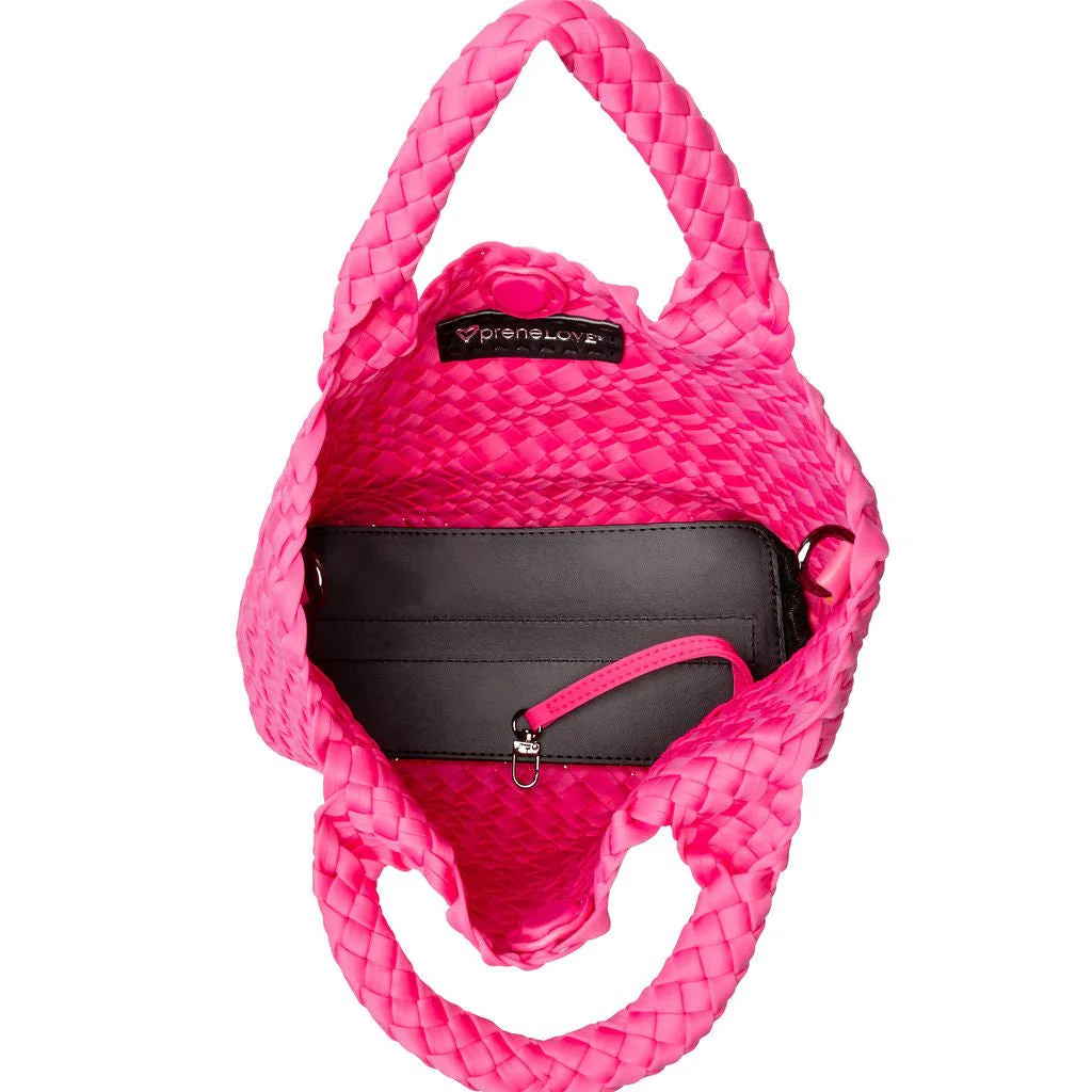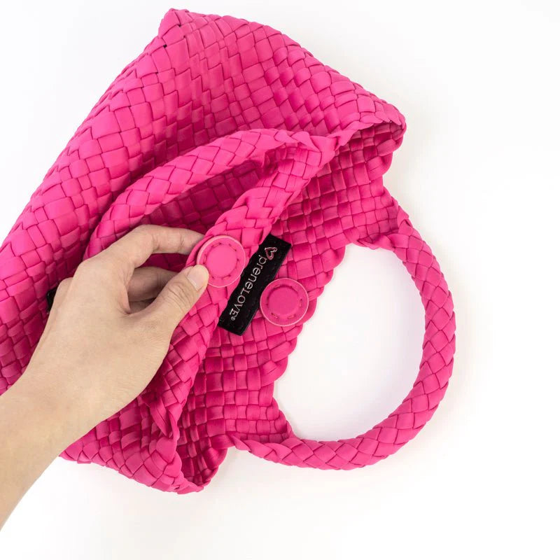 preneLove Brandon Mini Woven Neoprene Small Tote Bag with Wrist Clutch Magenta