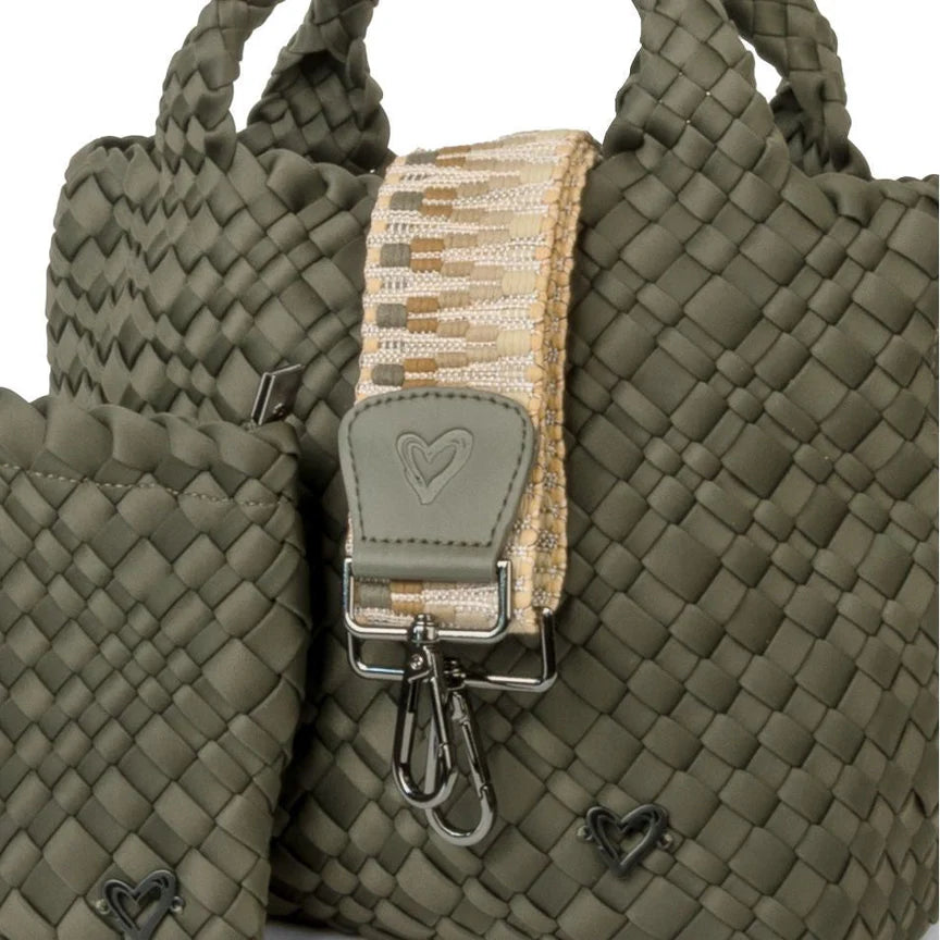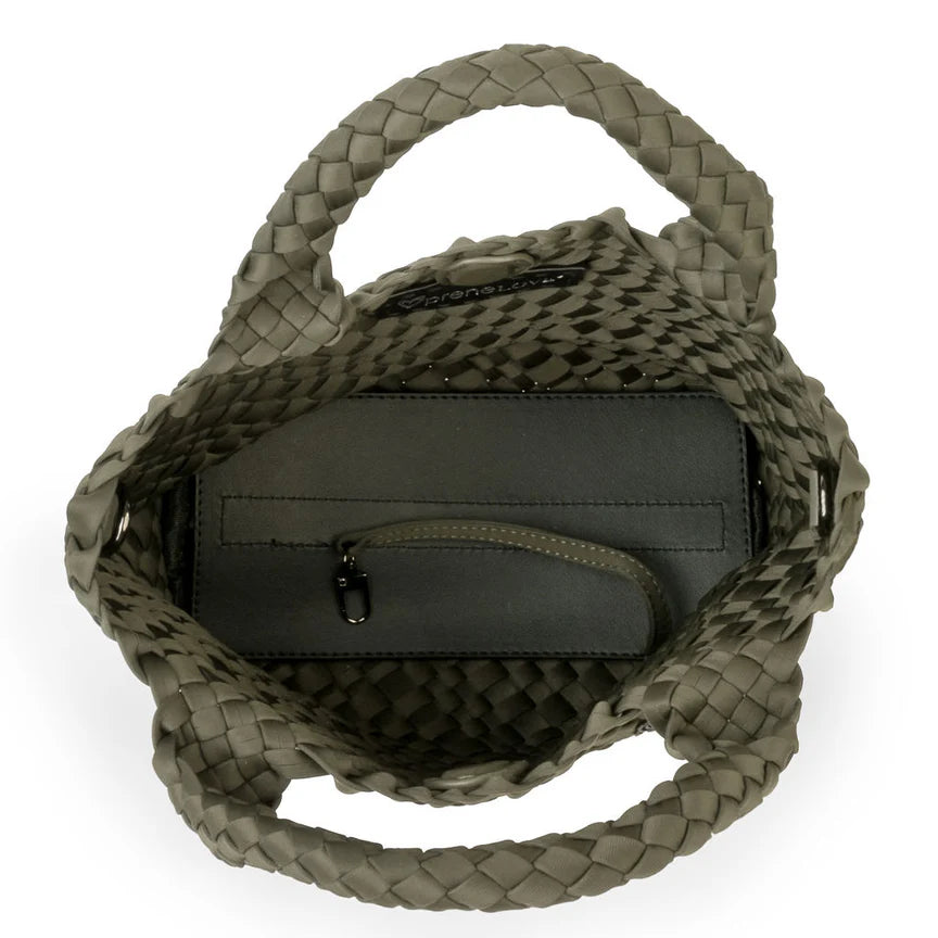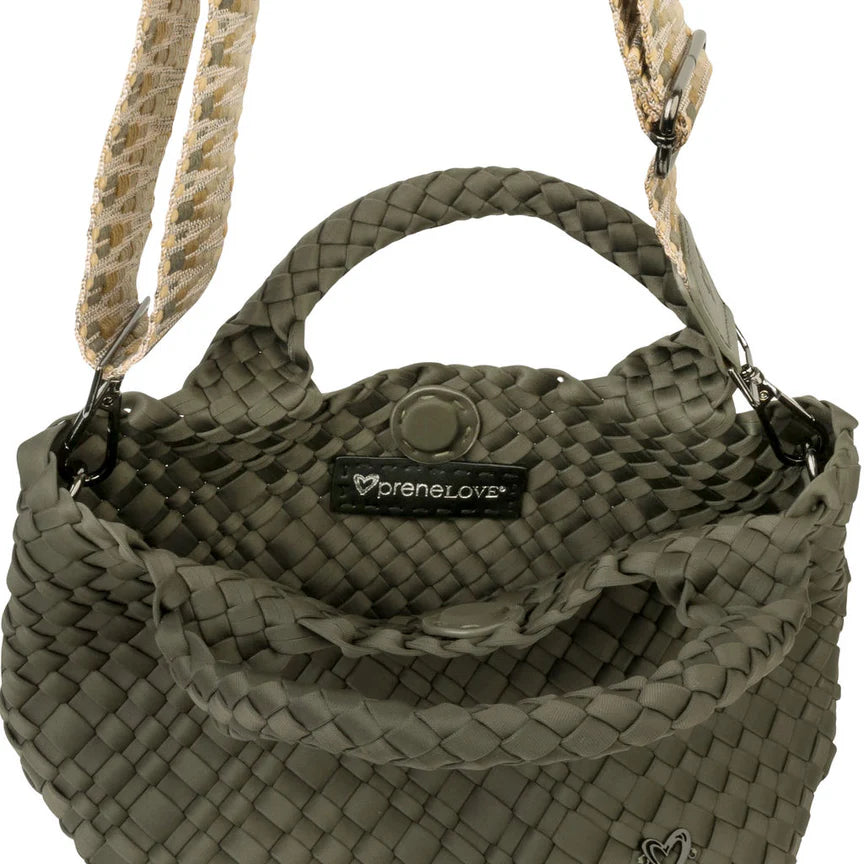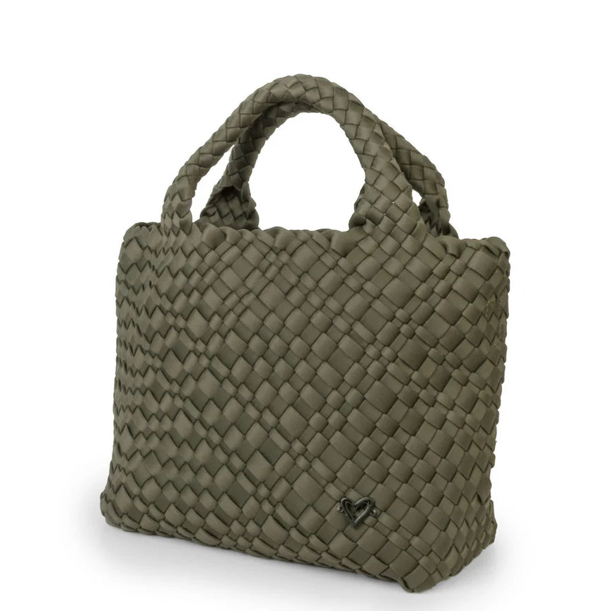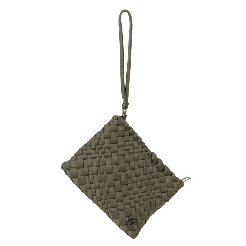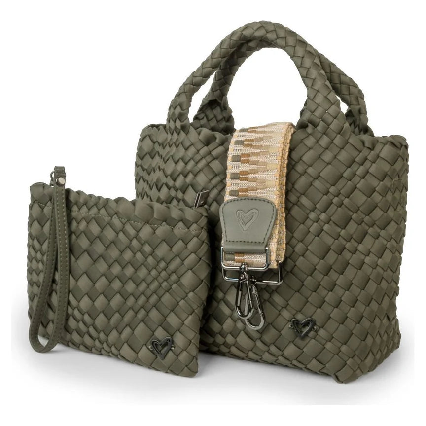 preneLove Brandon Mini Woven Neoprene Small Tote Bag with Wrist Clutch Olive