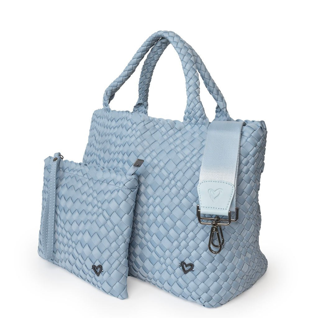 preneLove London Large Woven Neoprene Bag with Wrist Clutch Sky Blue