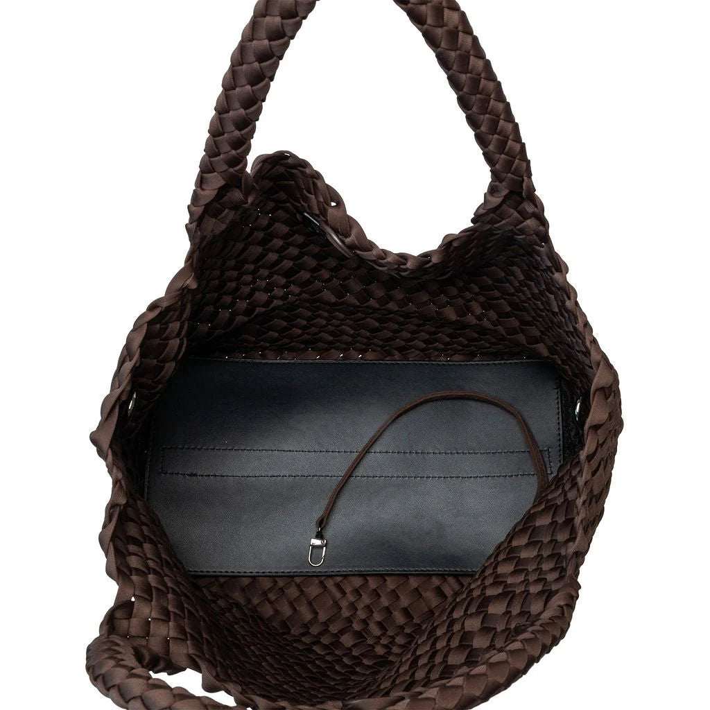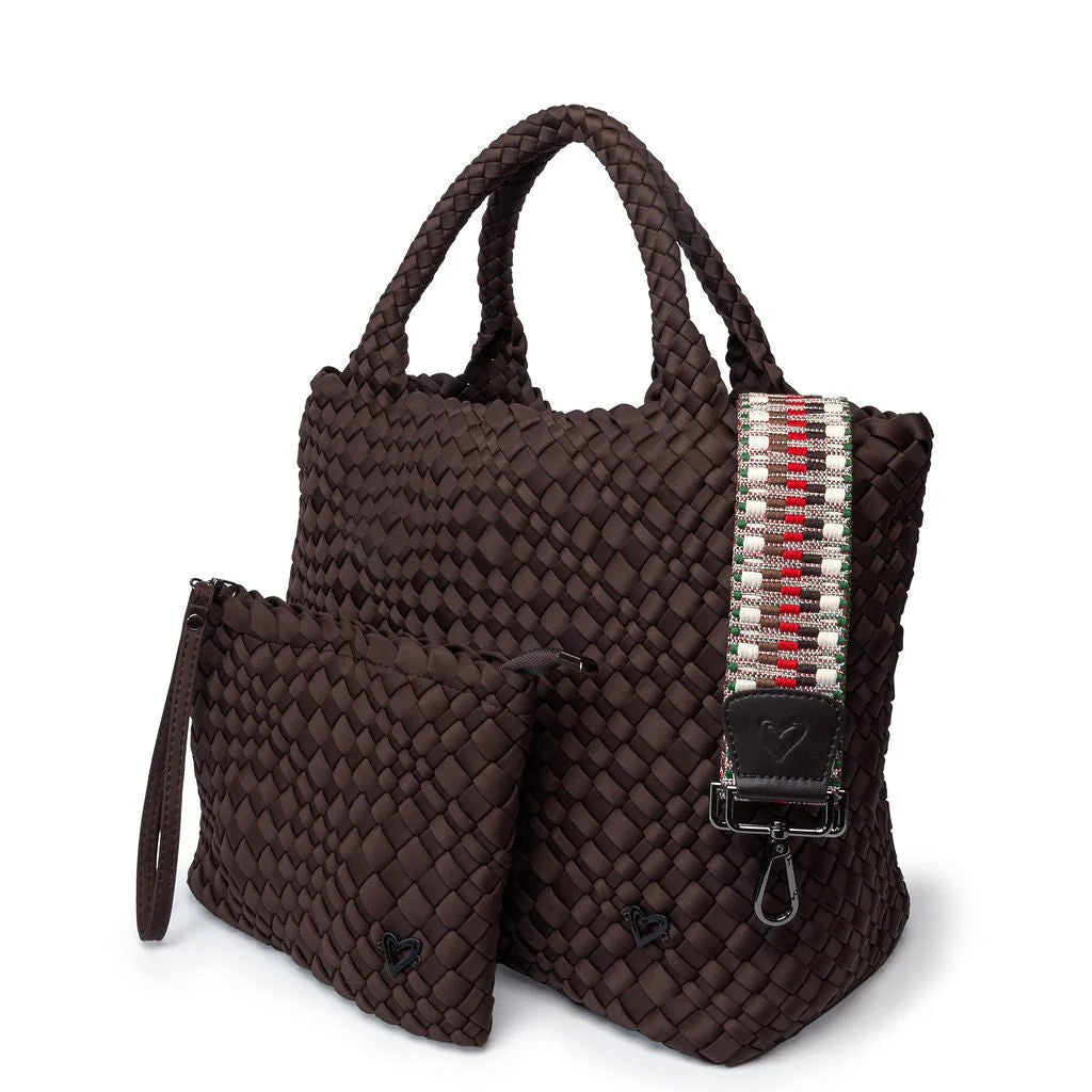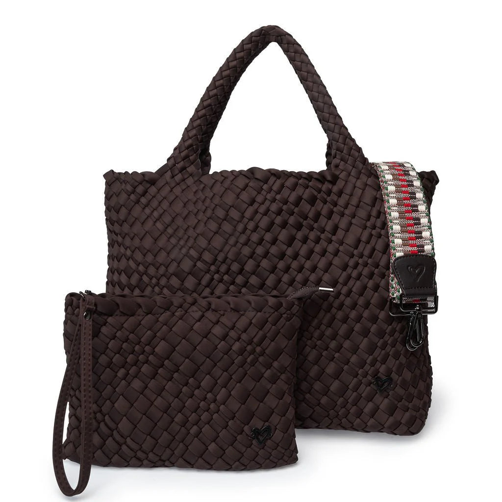 preneLove London Large Woven Neoprene Tote Bag with Wrist Clutch Espresso