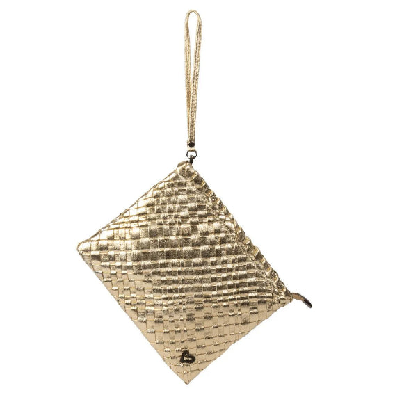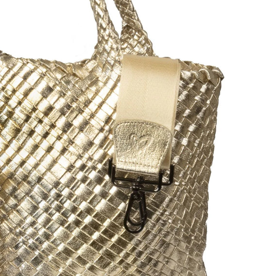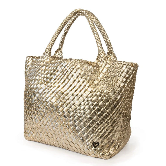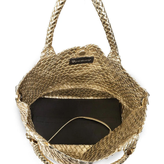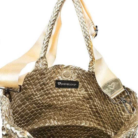 preneLove London Large Woven Neoprene Tote Bag with Wrist Clutch Gold Metallic