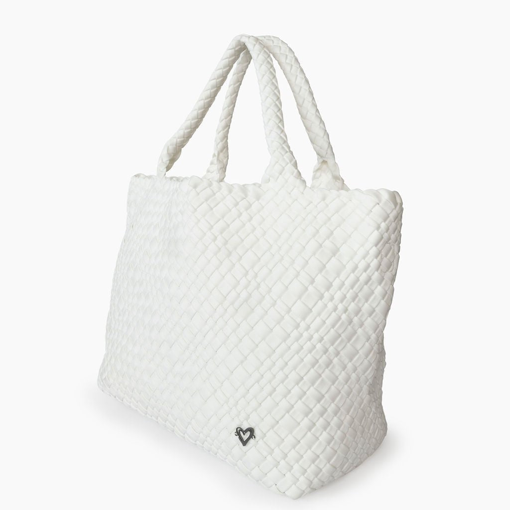 preneLove London Large Woven Neoprene Tote Bag with Wrist Clutch White