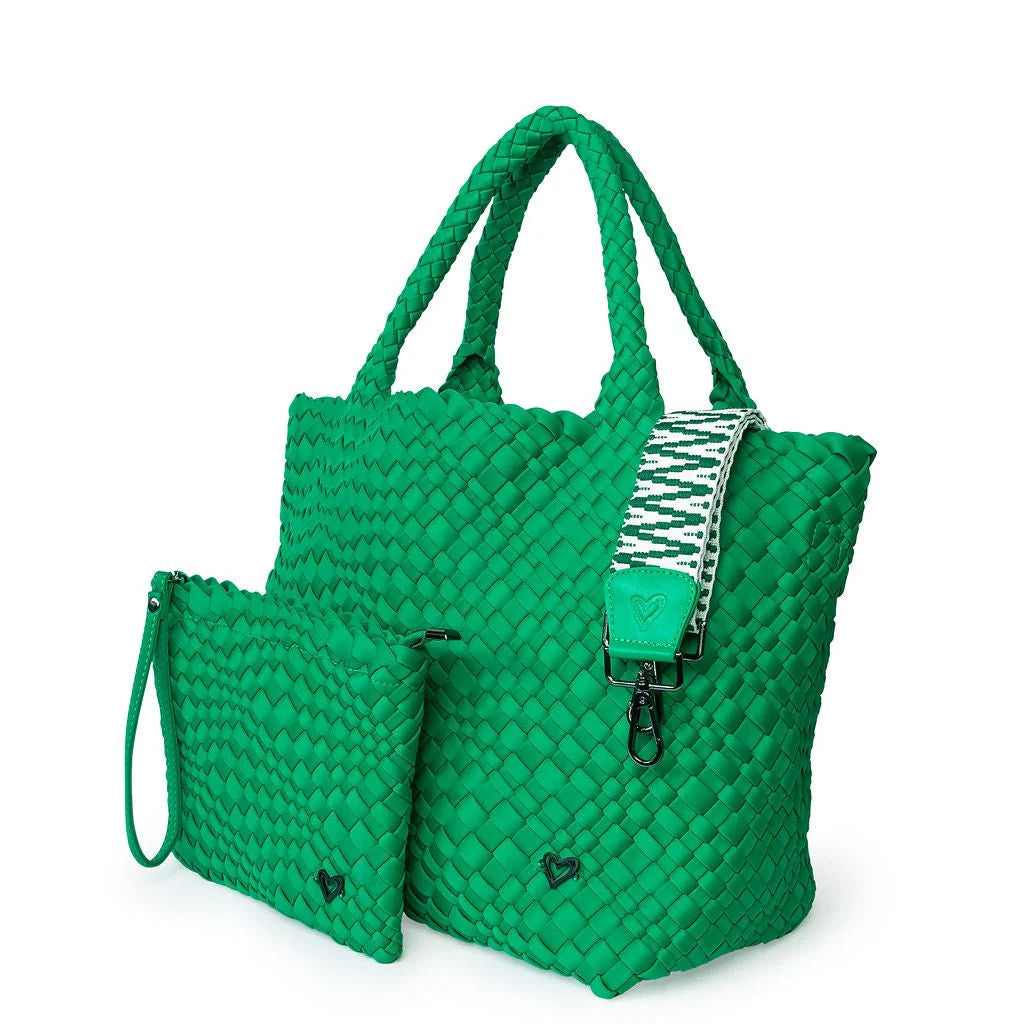 preneLove London Large Woven NeopreneTote Bag with Wrist Clutch Kelly Green