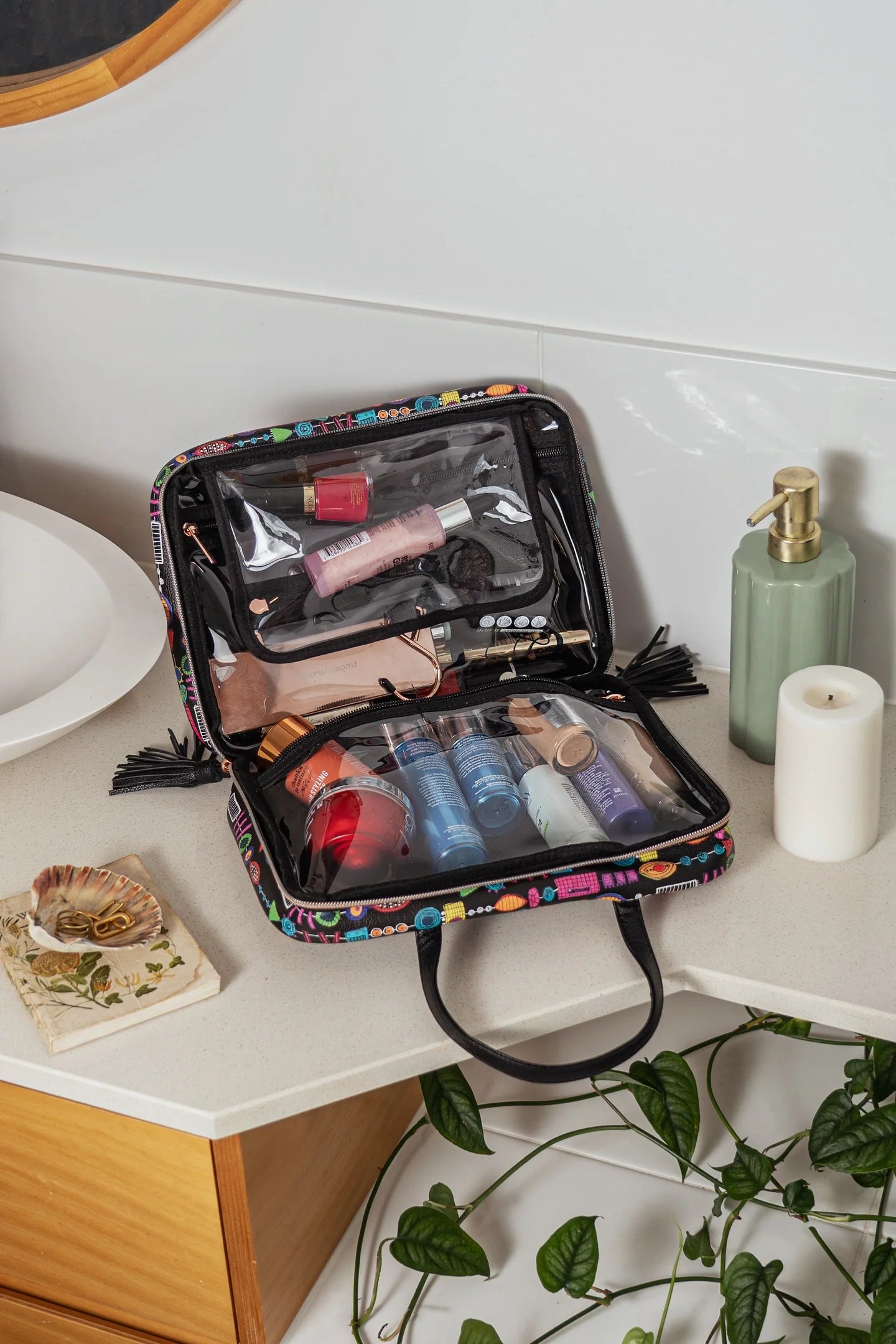 A colourful way to travel in style, these designer cosmetic bags feature artwork by Jennie Riley. Perfect for keeping your travel essentials and vanity products safe and compact while you move