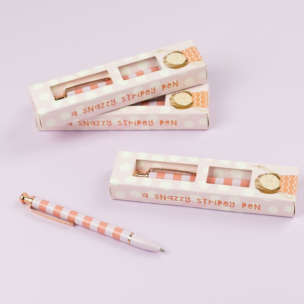 All hail the pen of productivity! A lovely stripey premium ballpoint pen with black ink. Comes nestled in a gift box, perfect for giving to friends and family.