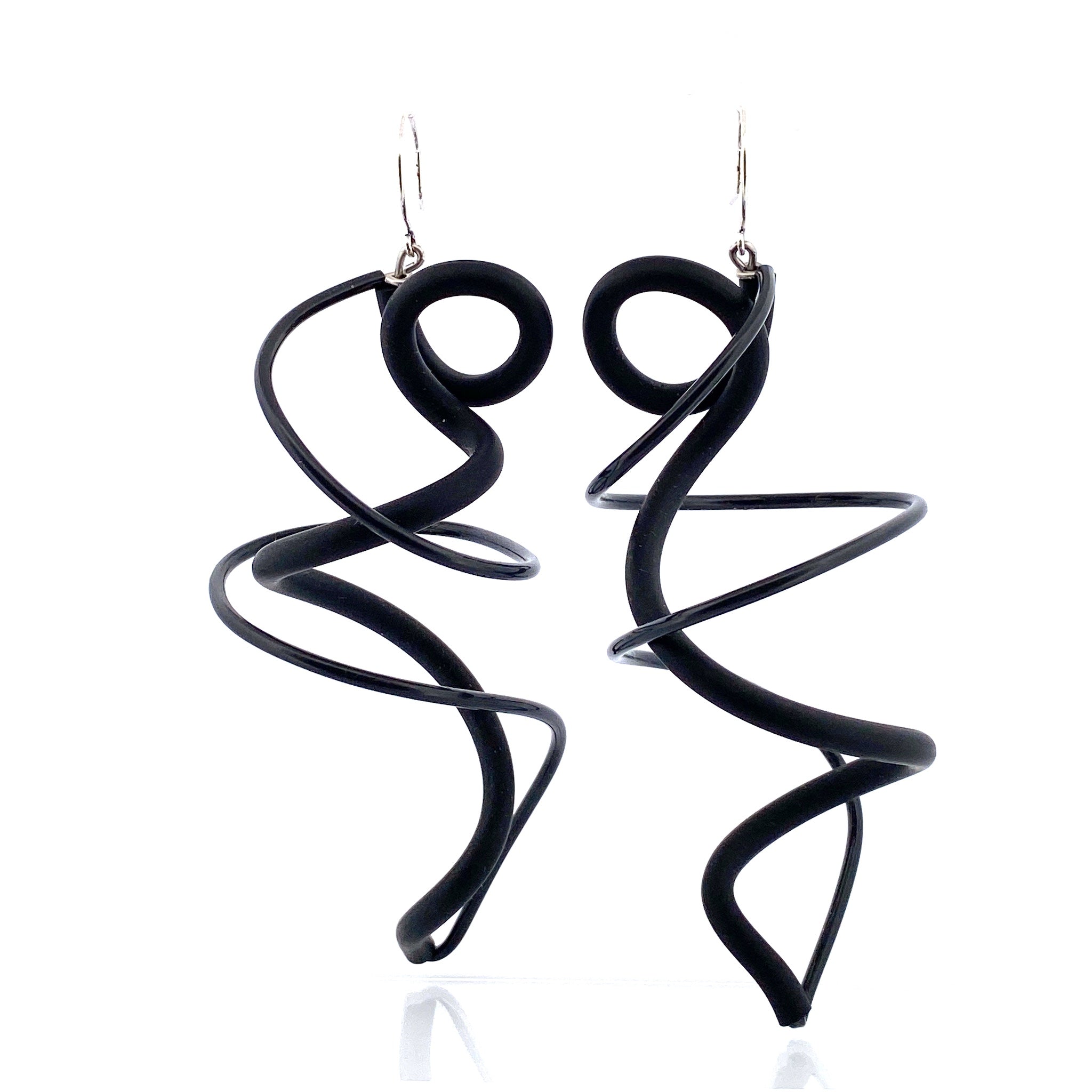 These Samuel Coraux Defile Squiggle earrings are a definite statement piece. As the smaller version, this earring features a thick and thin squiggle that comes together at the top and bottom. Crafted in France, the earrings showcase a sculptural form that delivers super contemporary style.