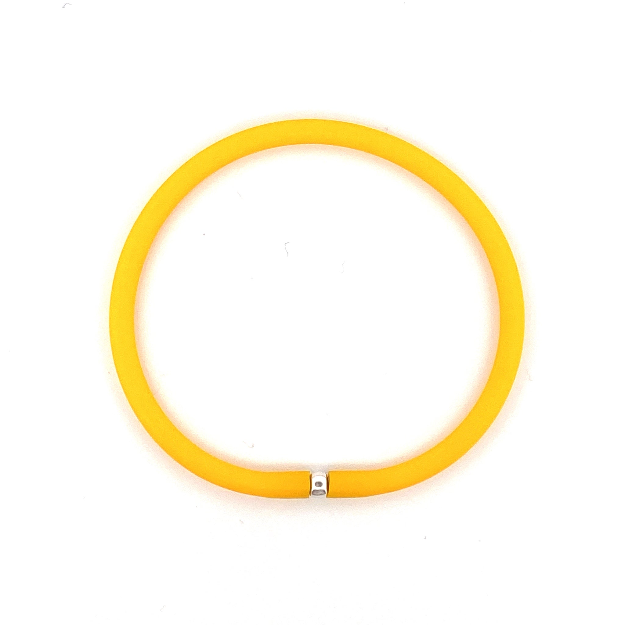 These fun, brightly coloured silicone bracelets can be worn alone or in a group. Due to their smaller width they can be stacked in multiple colours for maximum impact.