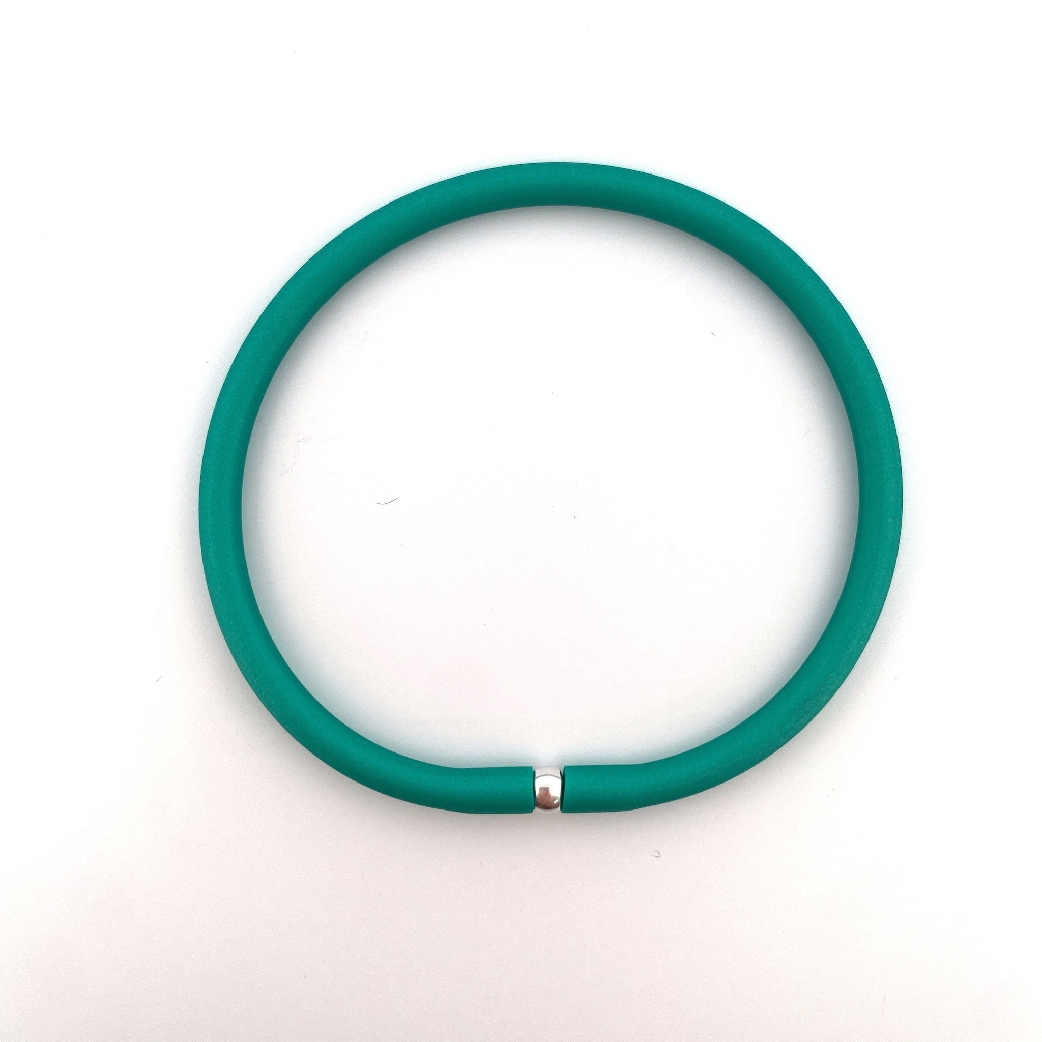 These fun, brightly coloured silicone bracelets can be worn alone or in a group. Due to their smaller width they can be stacked in multiple colours for maximum impact.
