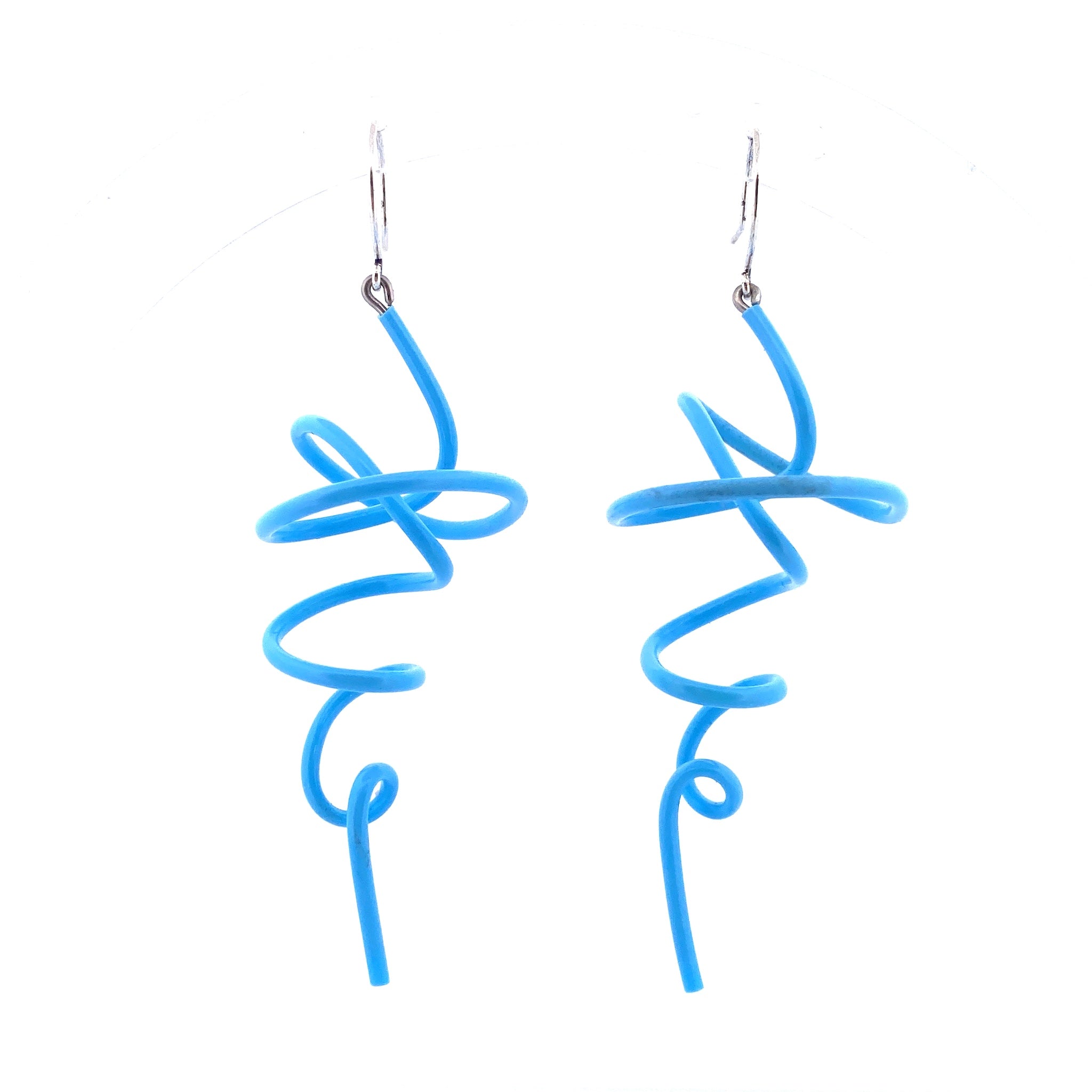 Little Zig is a finer version of the best-selling Zig earrings by Samuel Coraux. Little Zig is made with a finer PVC-covered wire in a matt finish. Perfect to add a pop of colour to any outfit.
