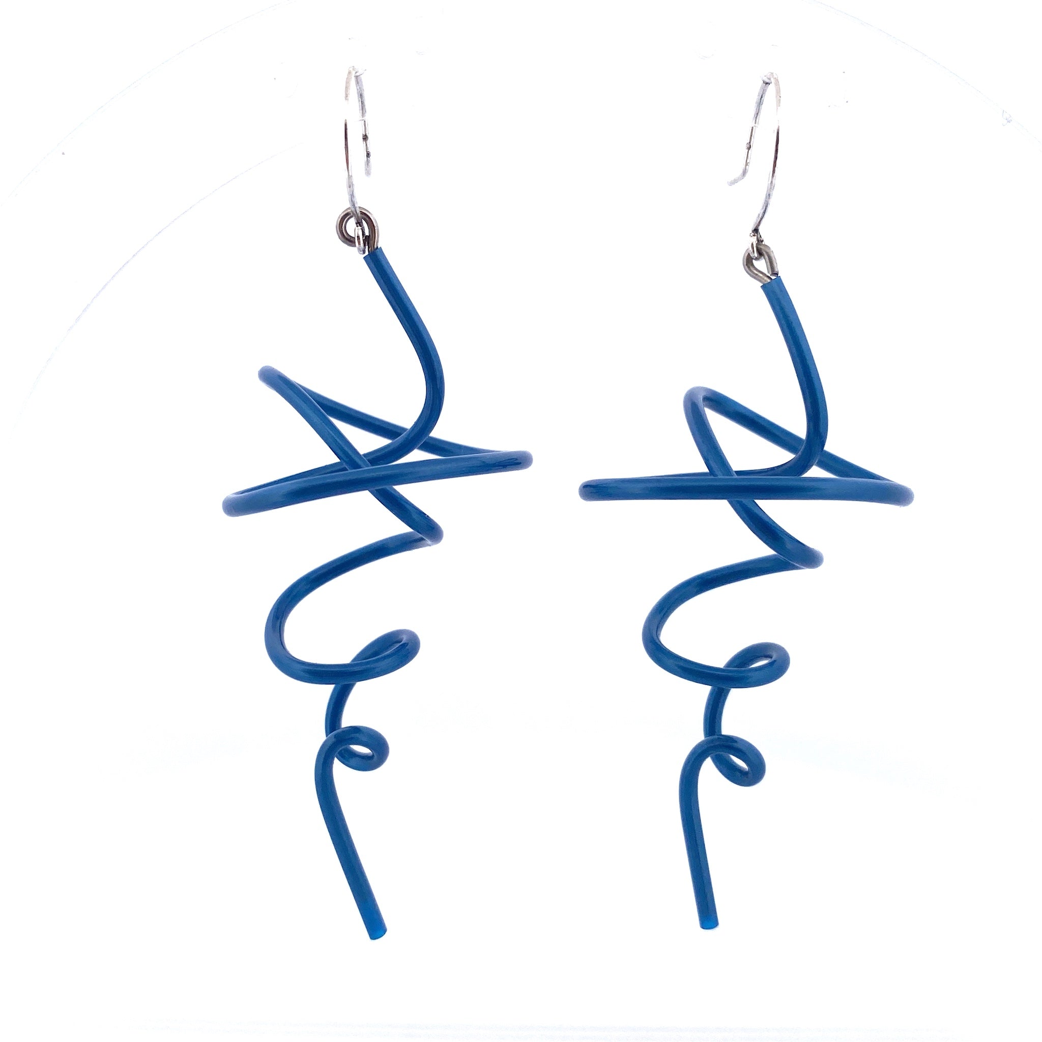 Little Zig is a finer version of the best-selling Zig earrings by Samuel Coraux. Little Zig is made with a finer plastic-covered wire in a matt finish. Perfect to add a pop of colour to any outfit.