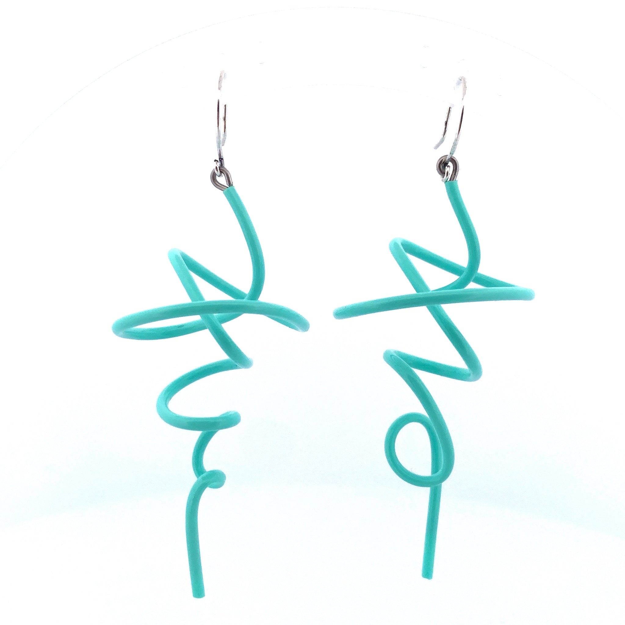 Little Zig is a finer version of the best-selling Zig earrings by Samuel Coraux. Little Zig is made with a finer PVC-covered wire in a matt finish. Perfect to add a pop of colour to any outfit.