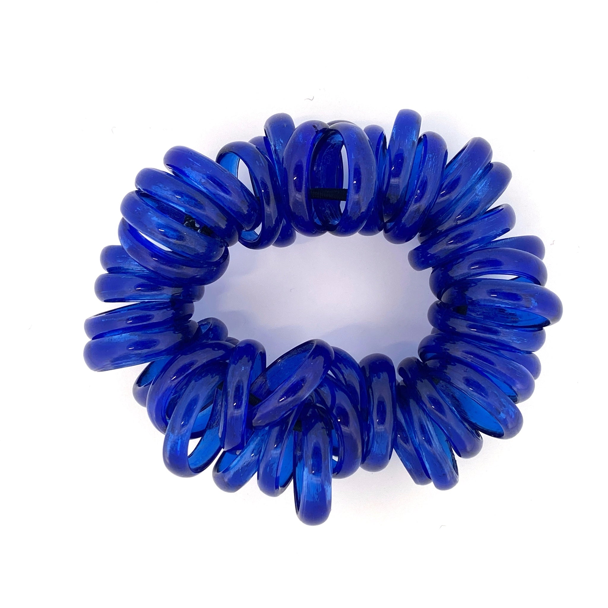 The Samuel Coraux Coco is a beautiful bracelet featuring swirls of Murano glass rings in clear blue.
