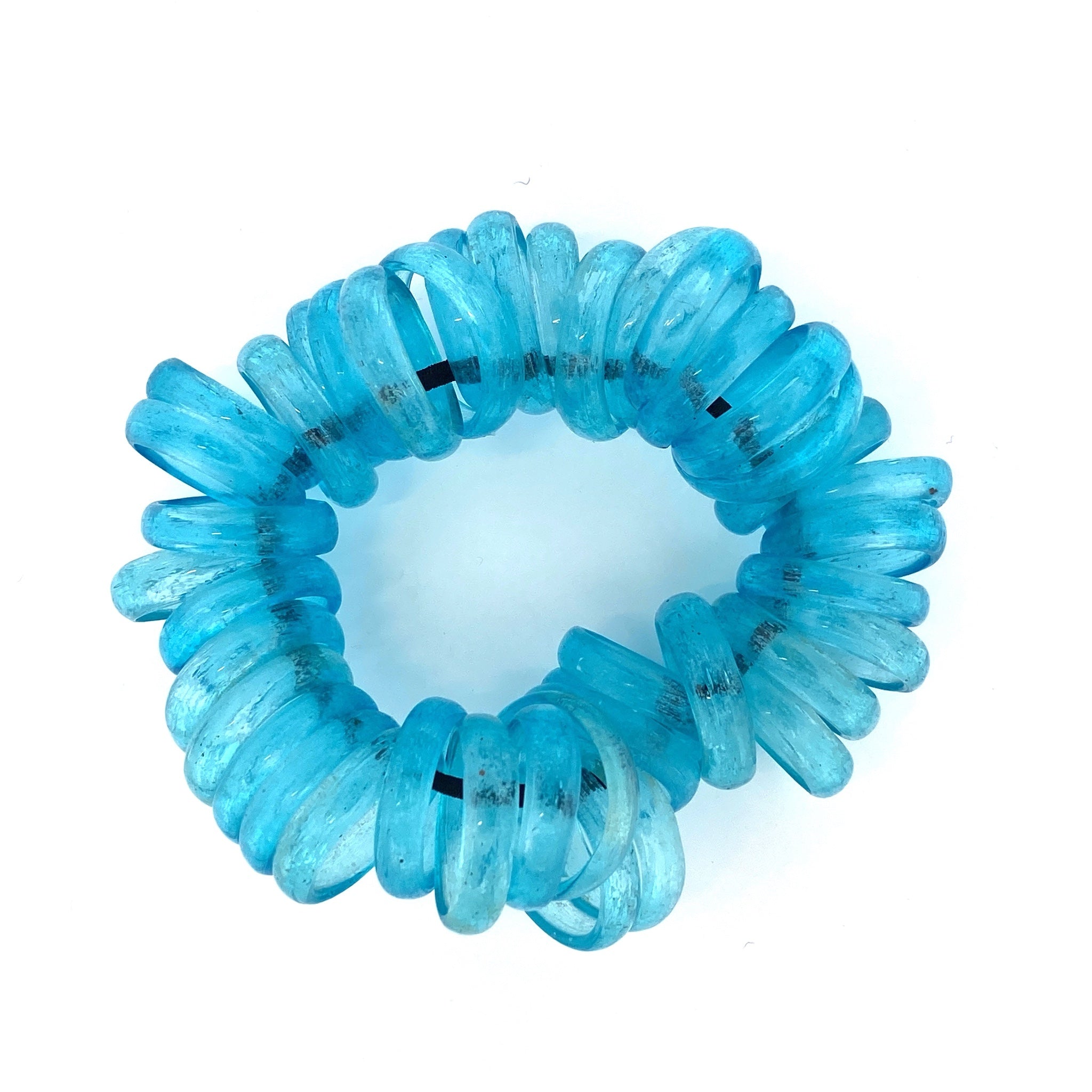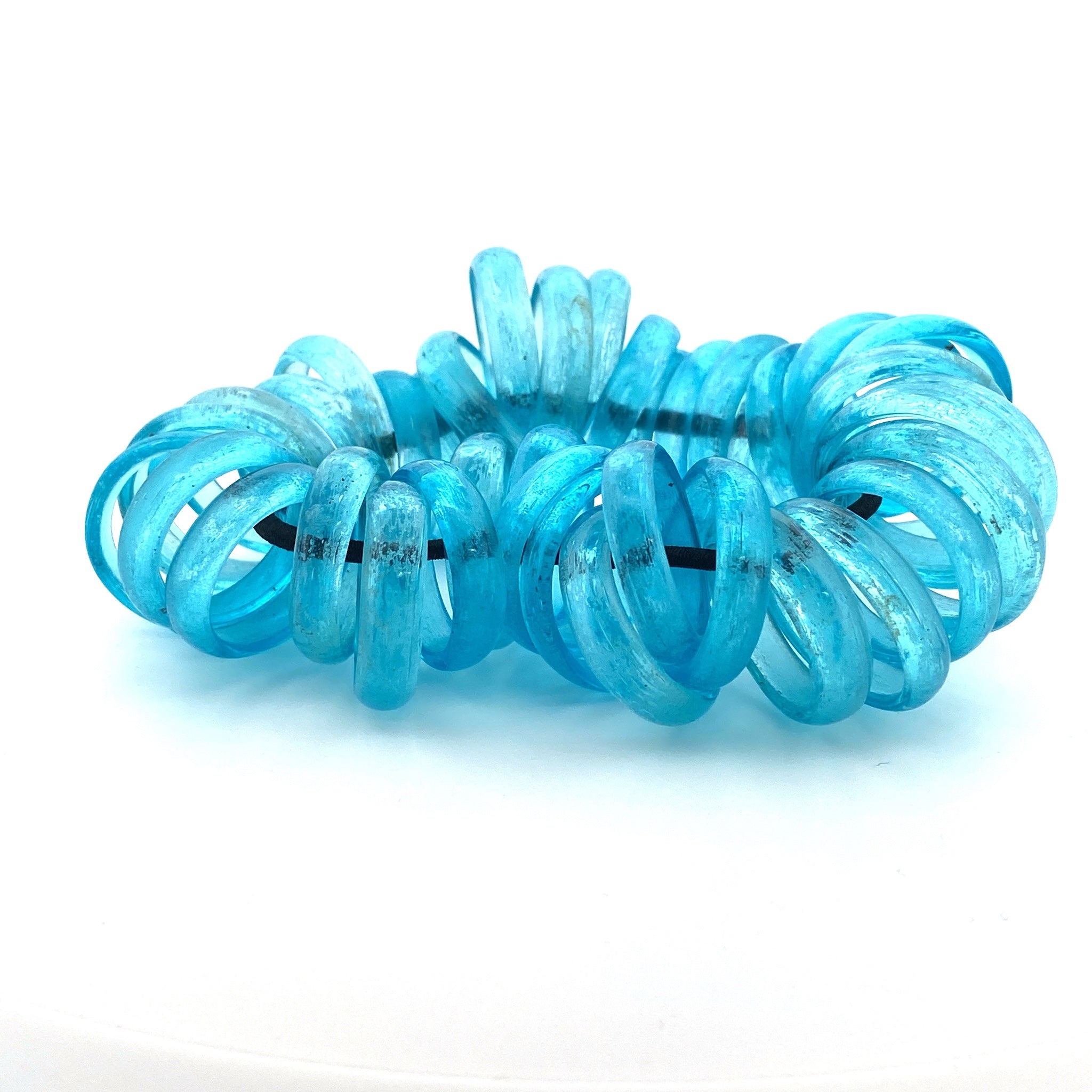 The Samuel Coraux Coco is a beautiful bracelet featuring swirls of Murano glass rings in clear blue.