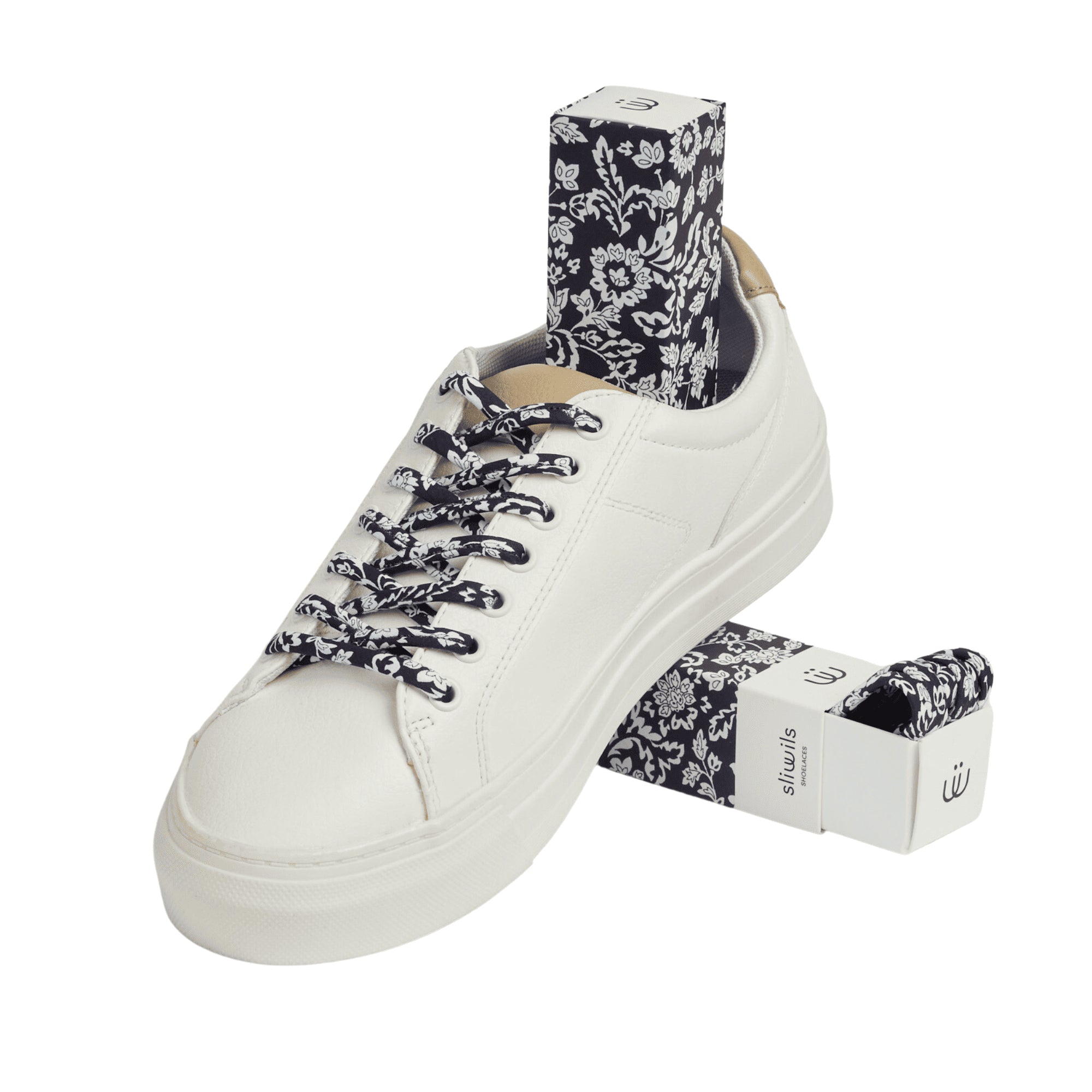 Sliwils 120 cm Navy Blue Floral Print Shoelaces