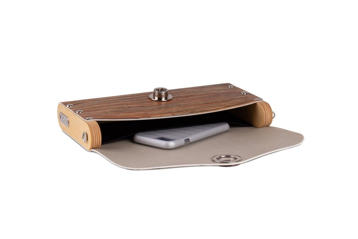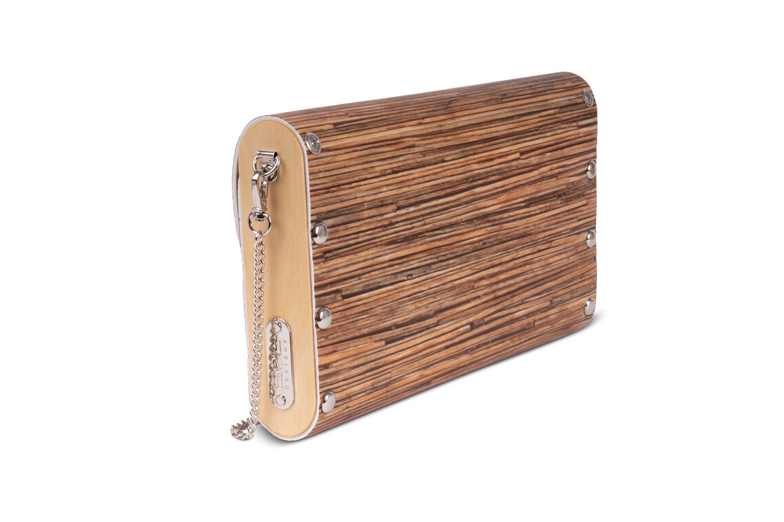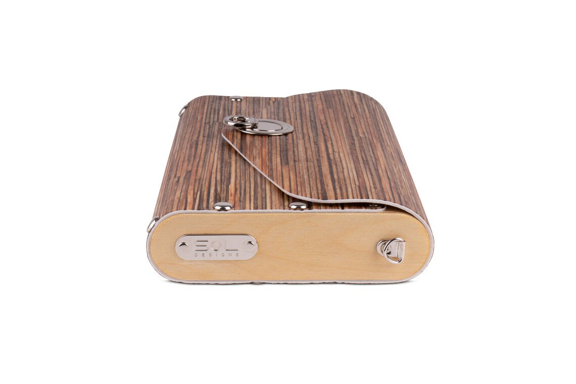 Care: Store your handbag in their own protective SOL Designs dust bag. Do not crush in storage to ensure the handbag retains its original shape. Wipe clean with a damp cloth. The wooden sides are protected with solvent free, natural vegetable oils and waxes, no extra care necessary.