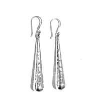 Another great everyday earring, this earring has a beautifully hammered texture that reflects the light and it seems to shimmer. The shape is like that of a baseball bat and its a very flattering shape on all faceshapes.