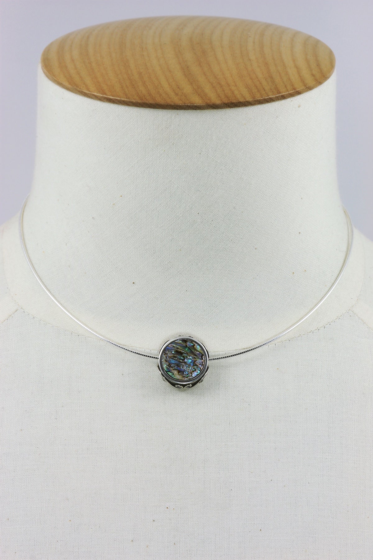 Sterling Silver & Paua Shell Pendant On Omega Chain