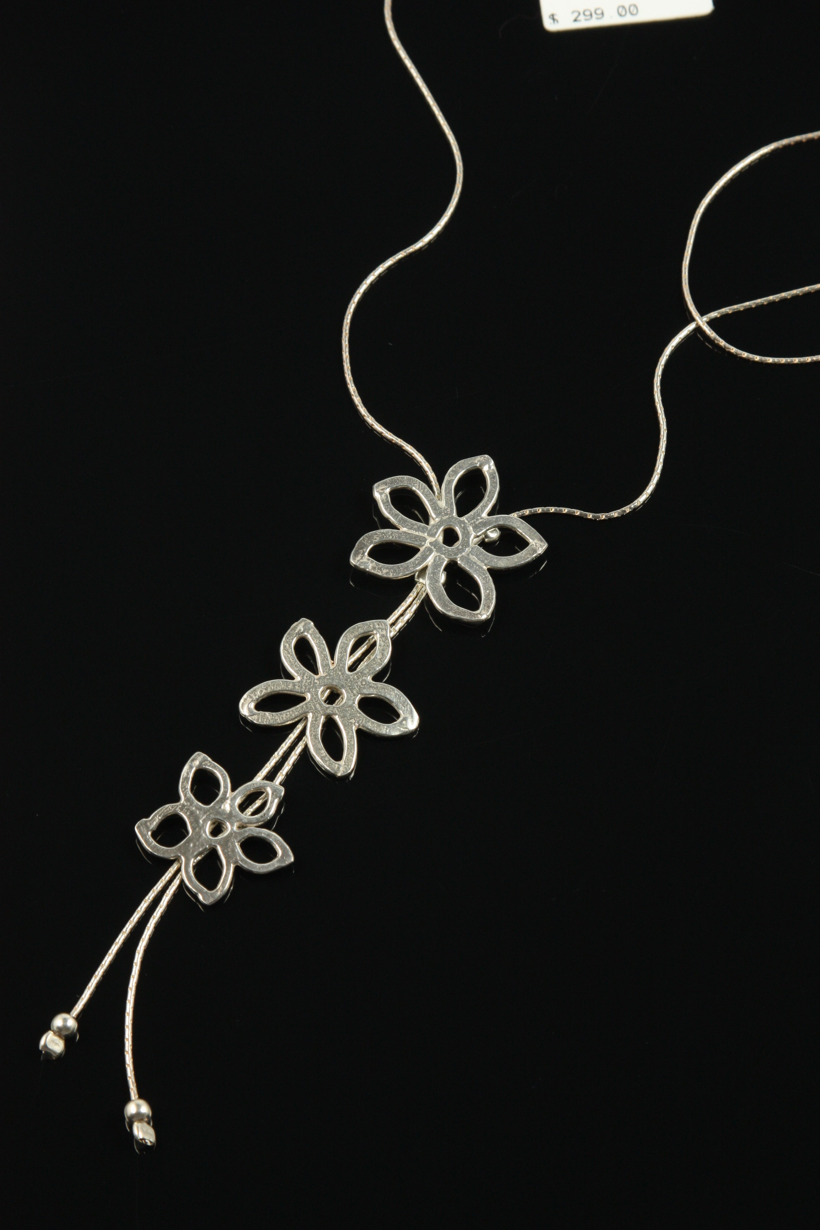This piece is meticulously handcrafted. Each of the flowers is made of individual peices of silver flattened and then shaped into individual petals that are then carefully filed so they fit together perfectly. Once they are just right, each piece to soldered together to make a complete flower. This is not a cast piece that can be reproduced again and again. Every piece is a one-of-a-kind and made with love and attention to detail.