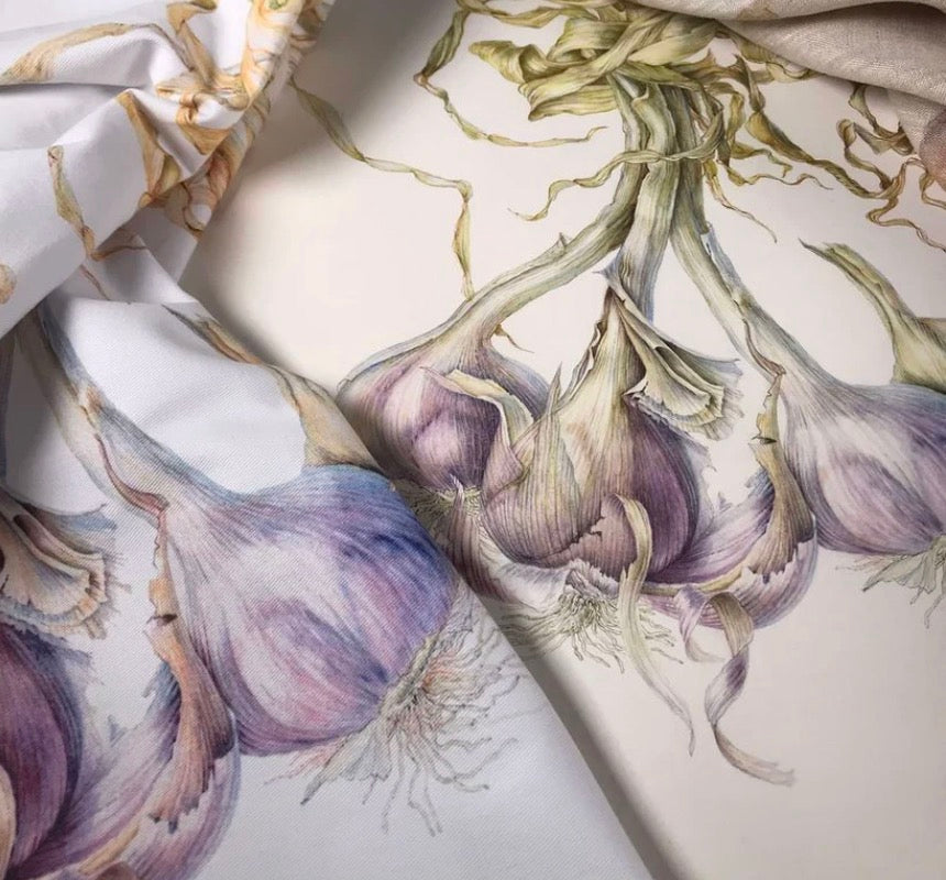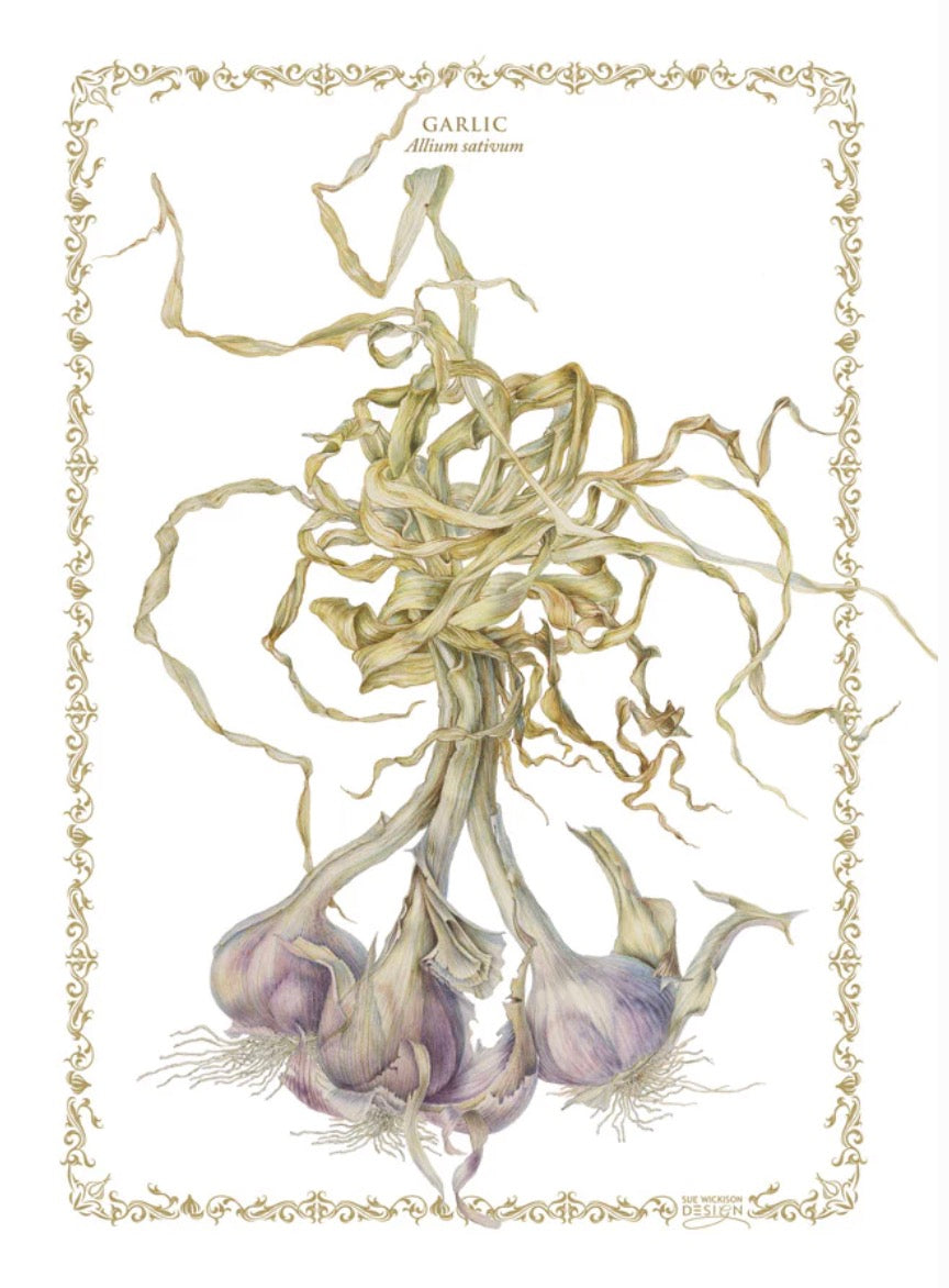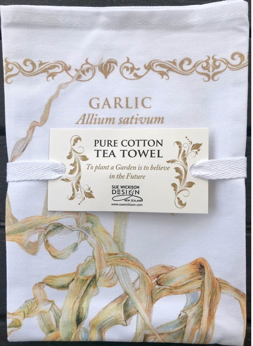 Sue Wickison Design 100% Cotton Tea Towel - Garlic