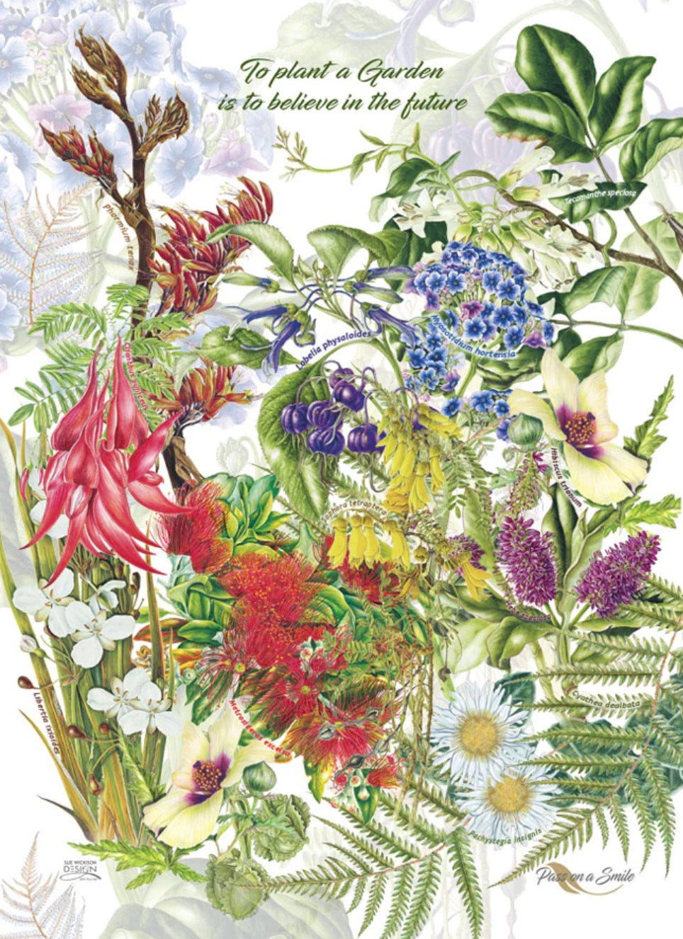 Sue Wickison Design 100% Cotton Tea Towel - NZ Natives