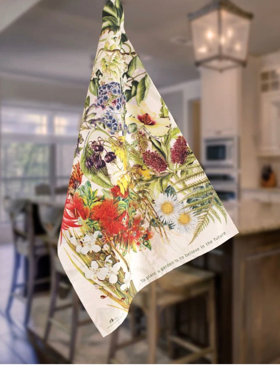 Pure cotton tea towel, showcasing New Zealand native plants and a message “To Plant a This floral print features a beautiful collection of native plants of New Zealand and will add instant colour to your kitchen. If you have just invested in an expensive kitchen or have your house on the market, tea towels add instant colour and make the place feel like home. It comes with a free gift tag to add your message if you would like to brighten someone else’s day! Digitally printed to capture the details of New Zealand's native plants.