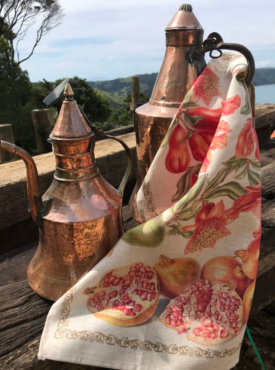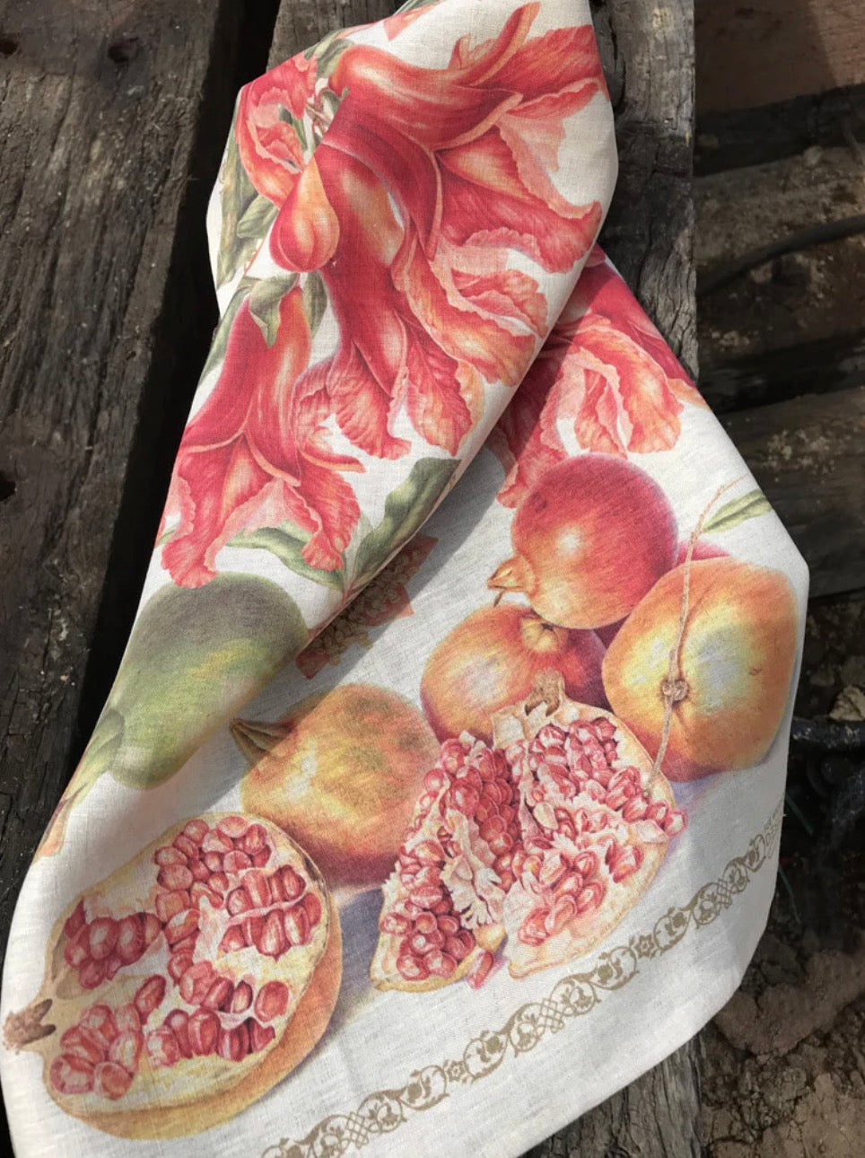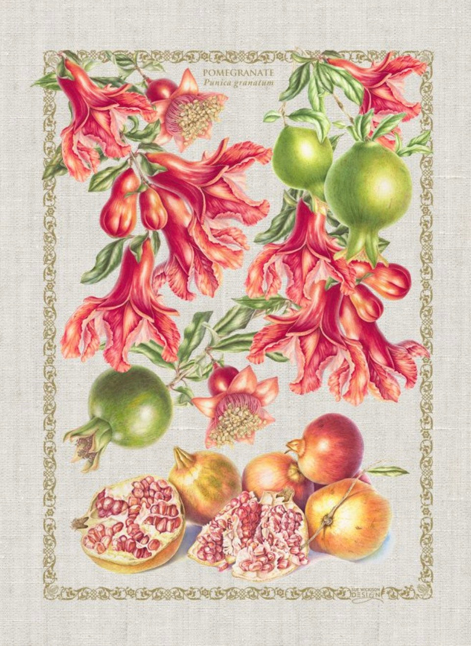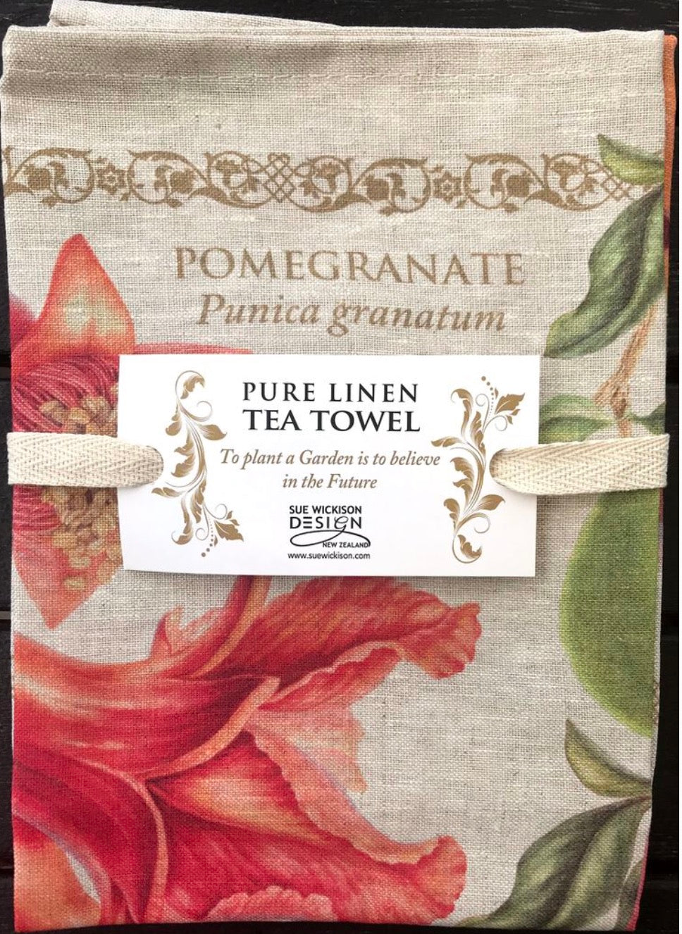 Sue Wickison Design 100% Linen Tea Towel - Pomegranate