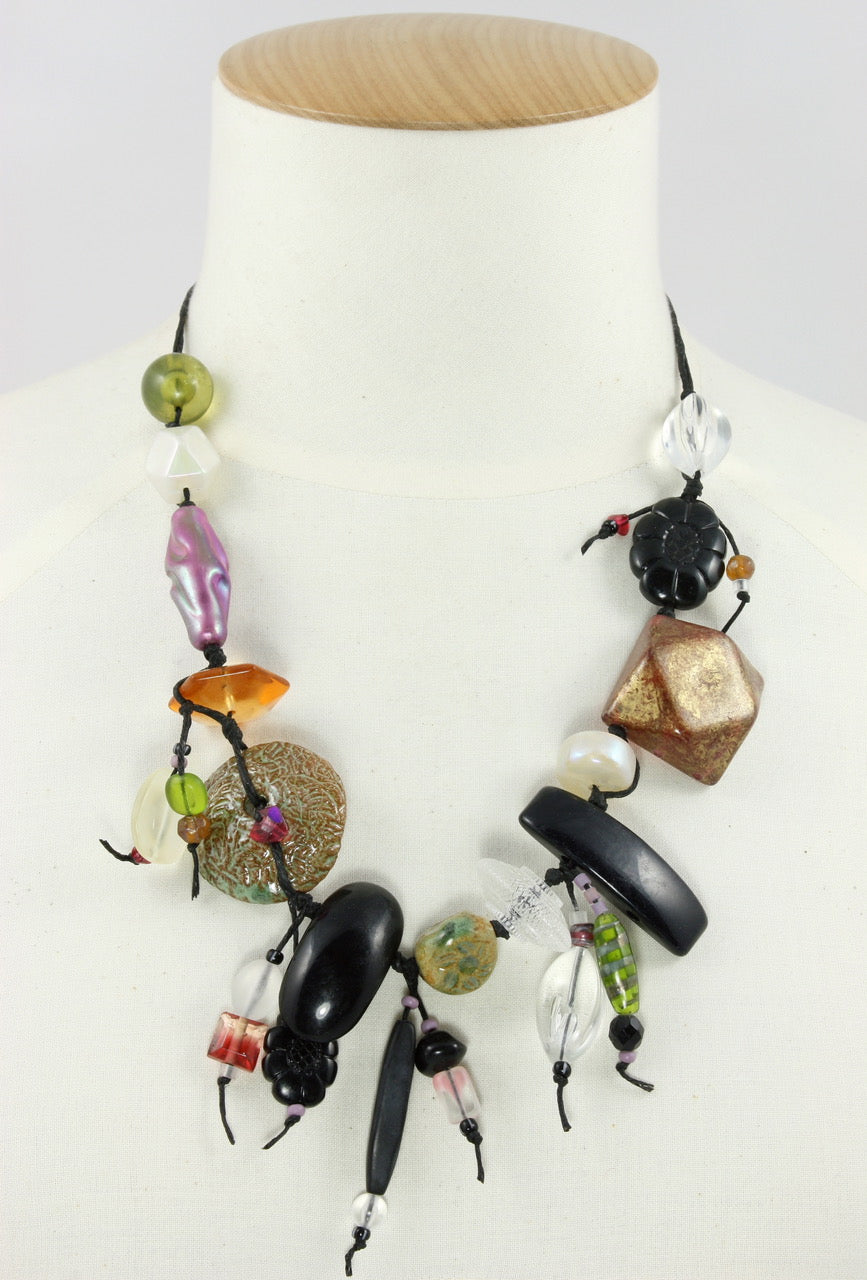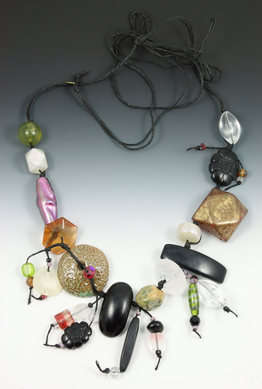 We are fortunate to have a few pieces of Teresa's work. This piece features many of these as well as handcrafted stoneware beads.