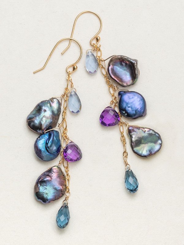 Holly Yashi Cascading Margo Earrings with Keshi Pearls - Peacock/Gold