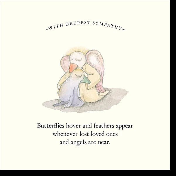 With deepest sympathy. Butterflies hover and feathers appear whenever lost loved ones and angels are near.