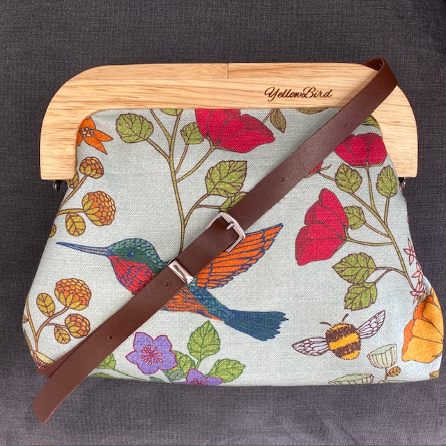 The Hummingbird & Bees Handbag fabric has been designed by Cecelia Monk, who is a talented artist from Sydney, Australia. Her work shows the themes of wonder, storytelling, and the beauty of the natural world.
