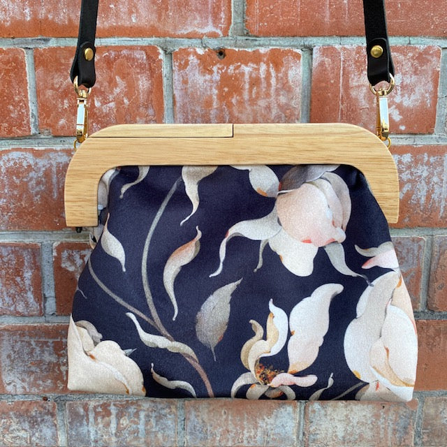 Each handbag is made from sustainably sourced Australian timber and features fabrics from independent fabric artists around the world.