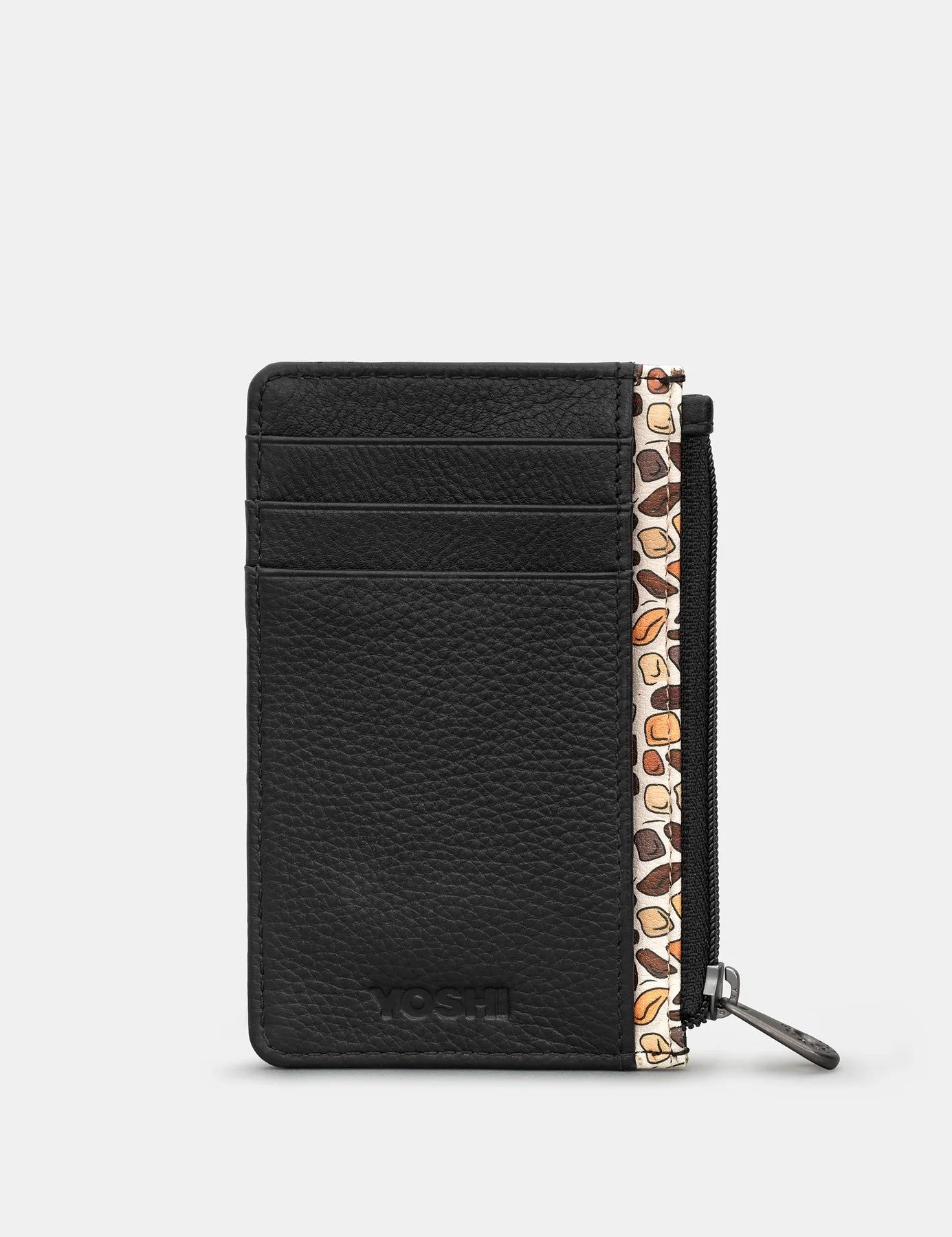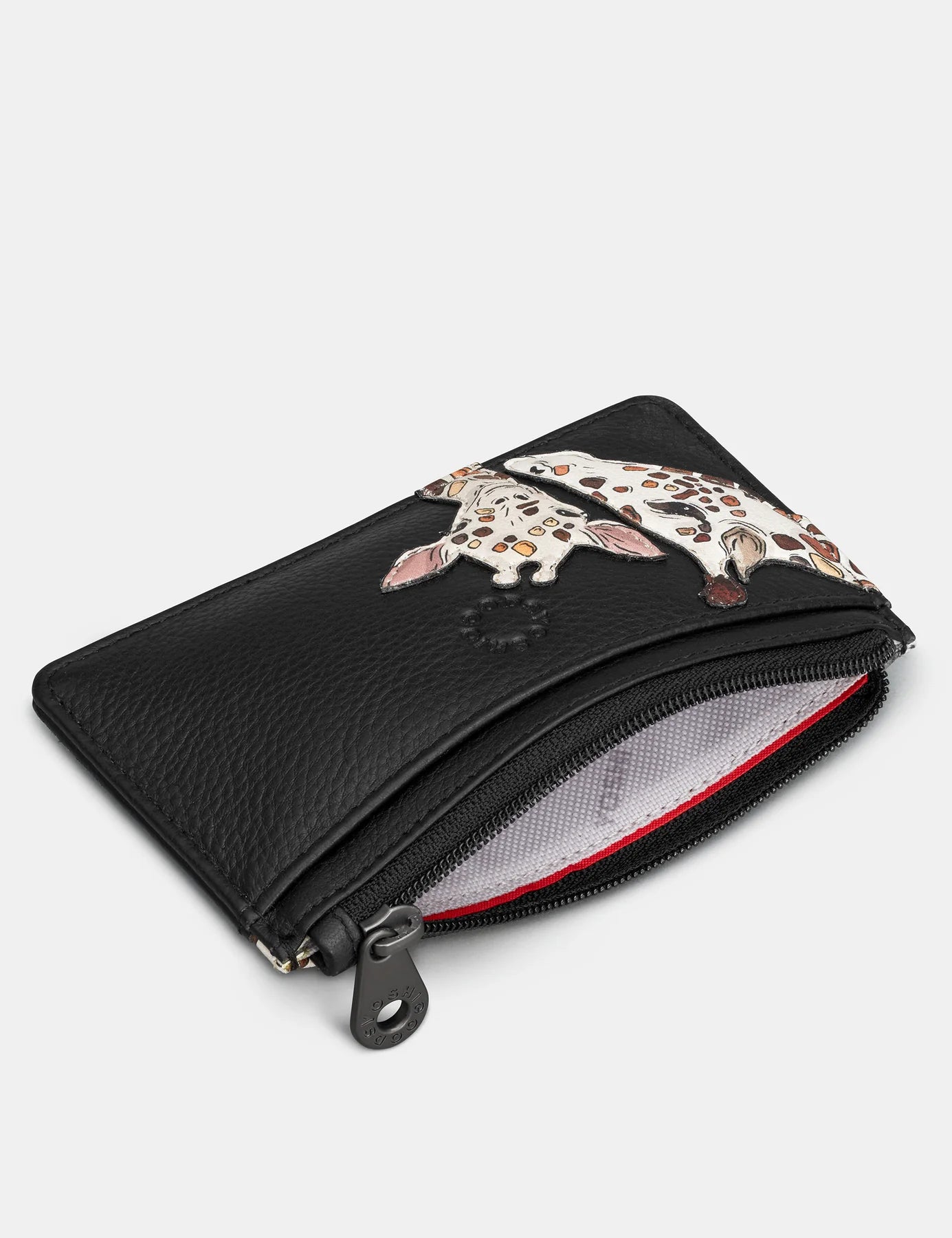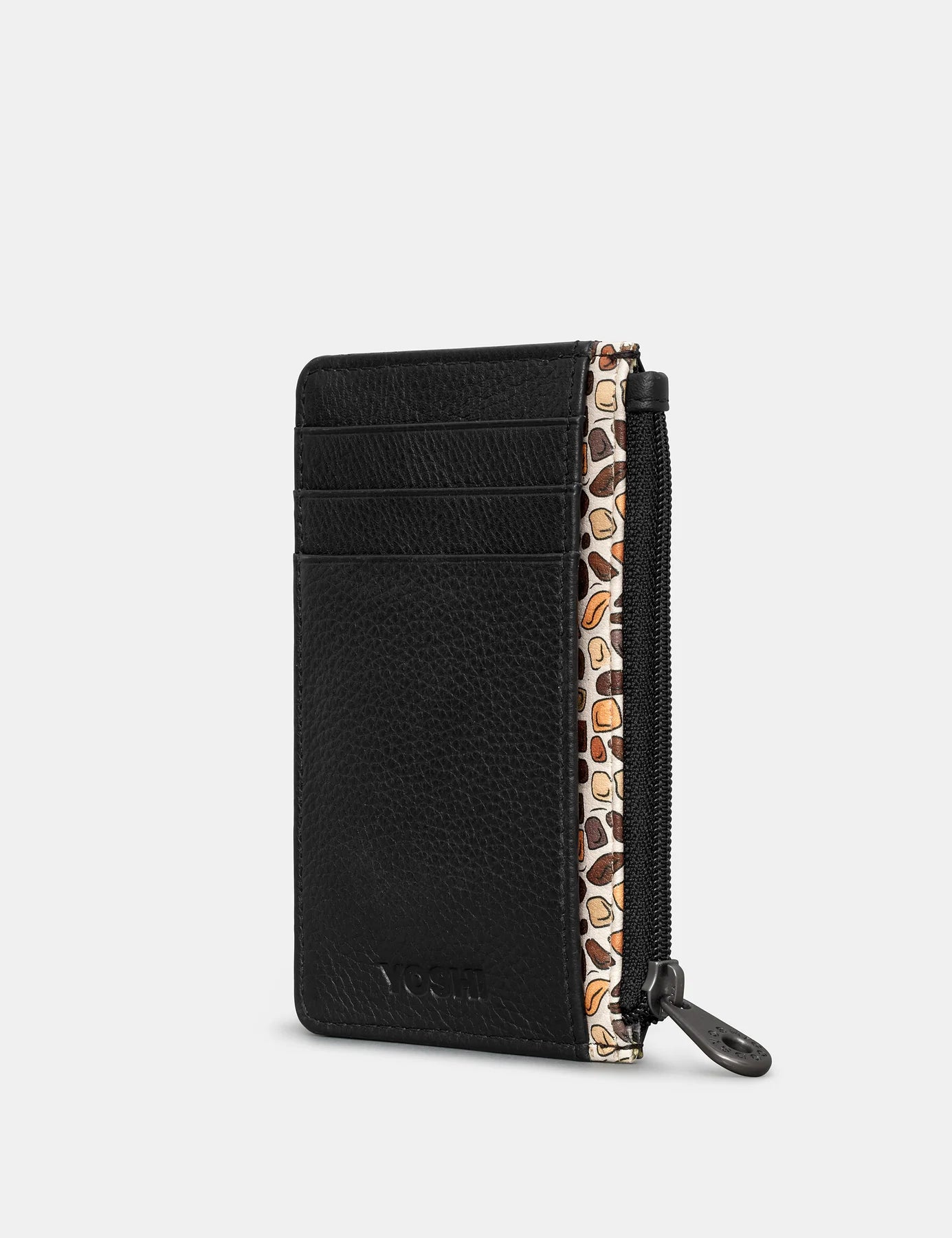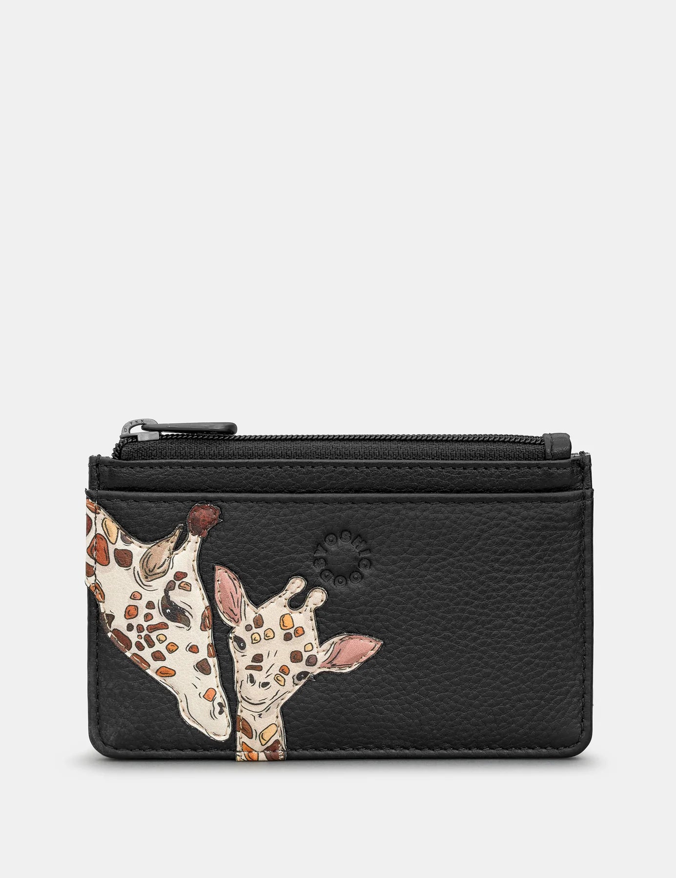 Our black leather Mothers Pride style is a purse / card holder that fits easily into any pocket or bag. The two stunning giraffes on the front are handcrafted detailed appliques on this style which has 3 card slots, 2 slip pockets and a zip top section which is perfect for, coins, notes, extra cards or receipts.