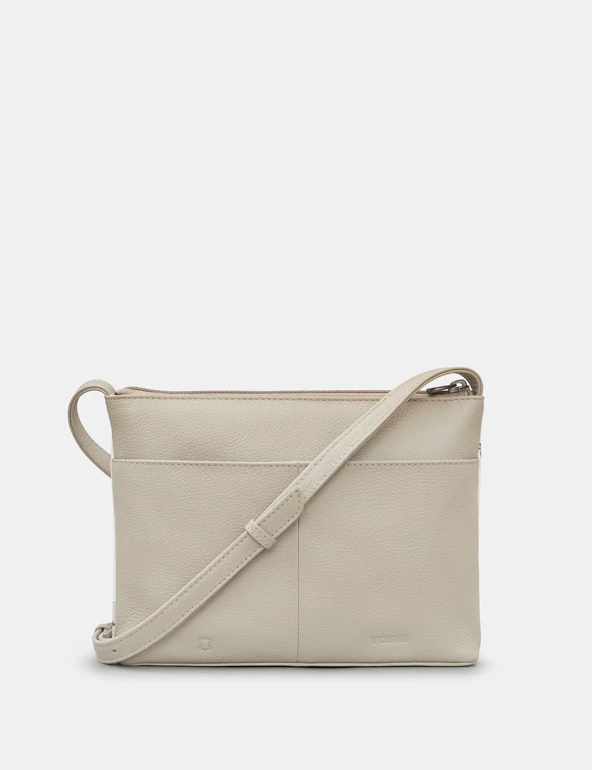 Warm Grey Leather Cross Body Handbag