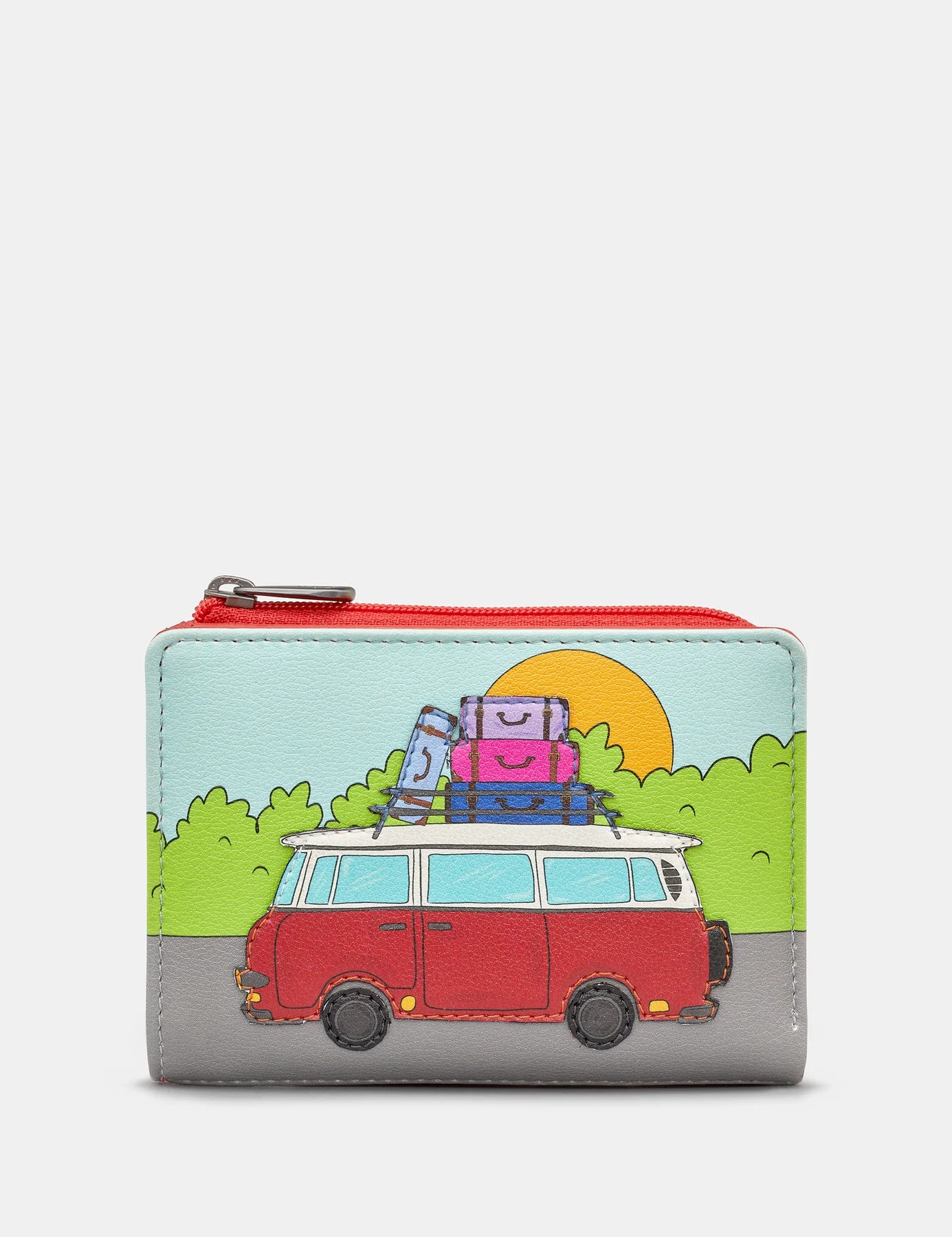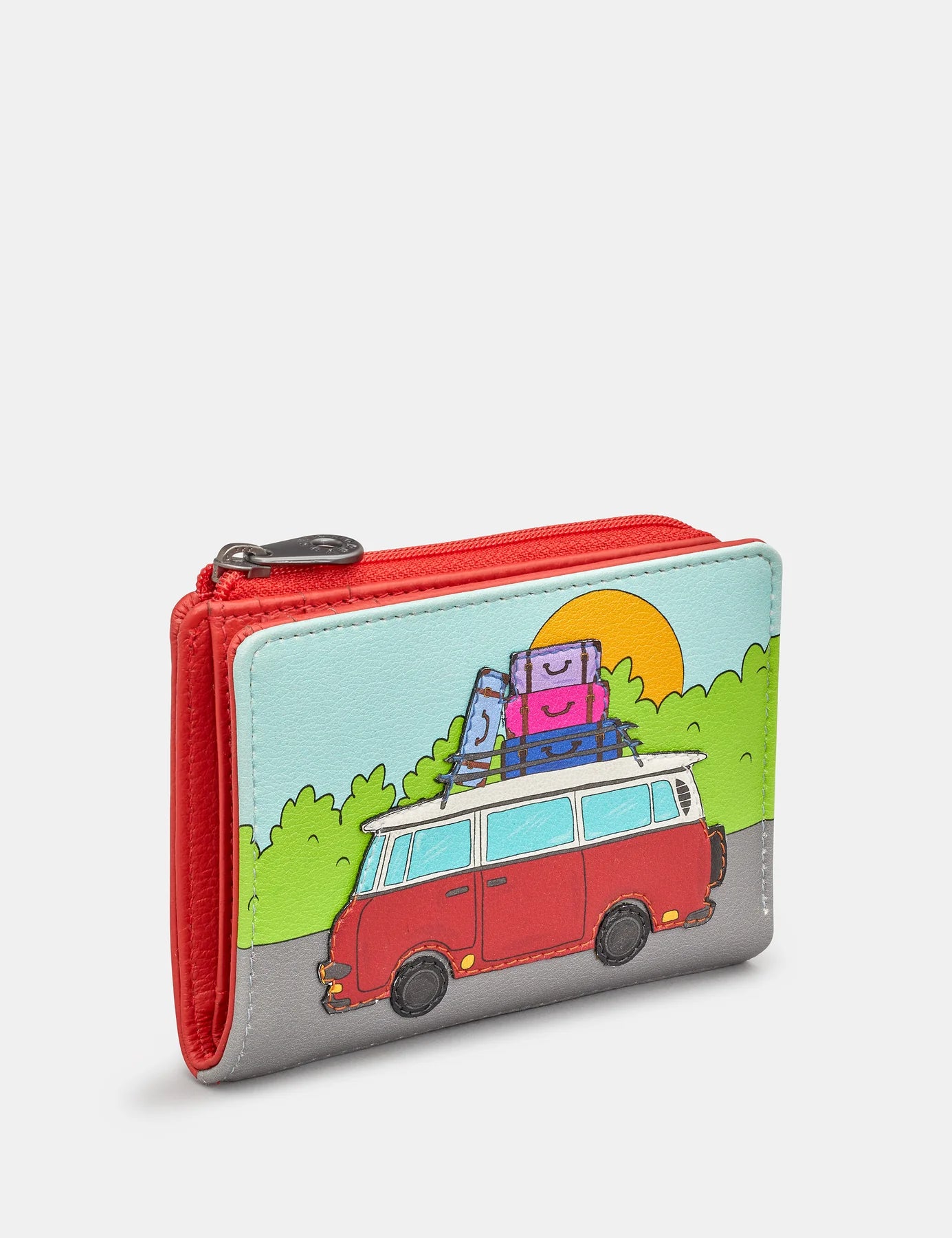 Yoshi Camper Van Appliqued Leather Small Flap Over Red Wallet & Coin Purse - Y1275 23 CAMPER