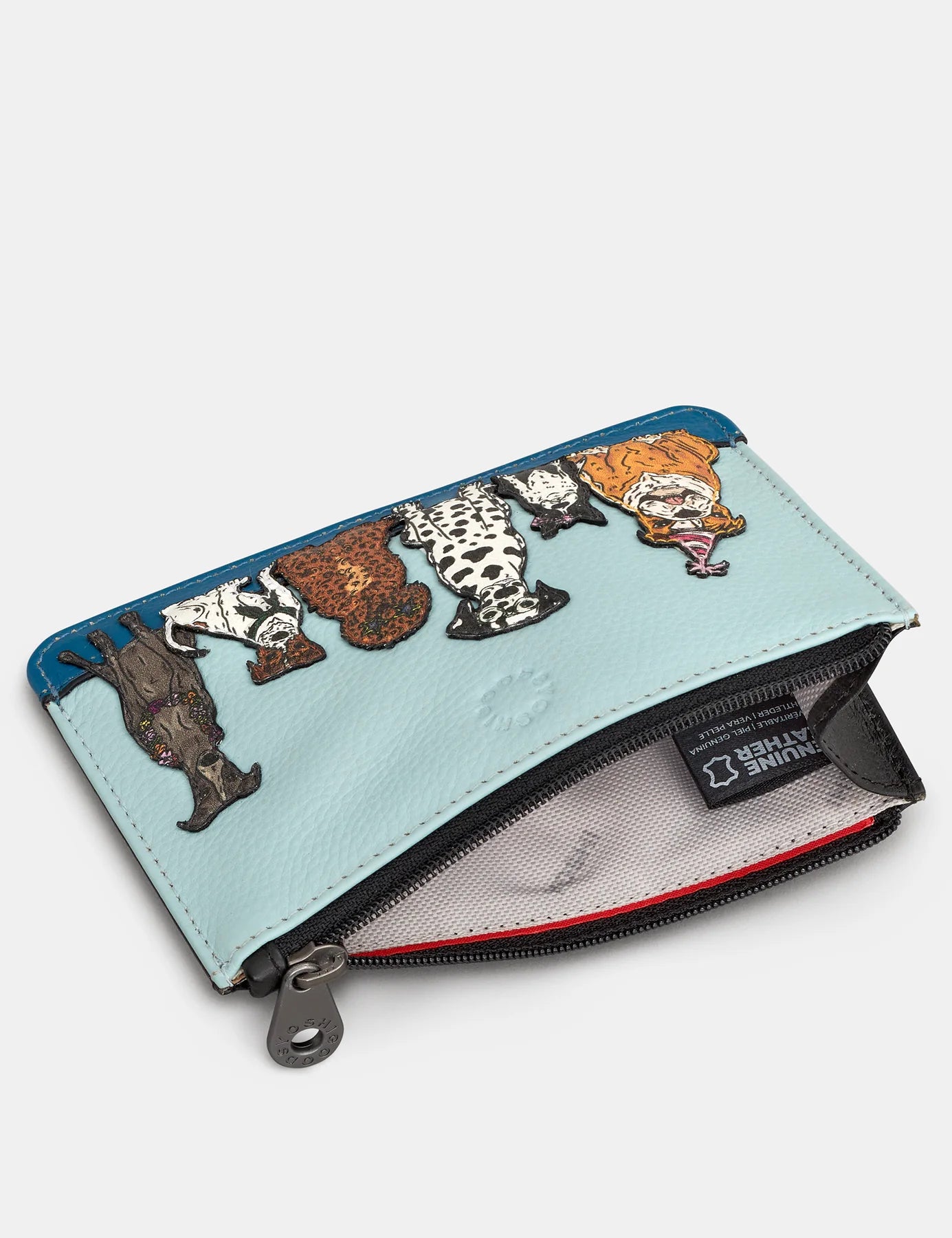 It’s been a summer of celebration so far and this jaunty, fun-loving gang are not planning to miss out on the front of this slimline leather purse for women. From our fun-loving greyhound looking ready to bust a move in her Lei, to our dashing Dalmatian keeping it cool as ever casually rocking a pair of understated aviators. This purse has a zip top fastening and a very handy credit card slot on the outer and credit cards will also fit in the zip section. RFID protection is also included as standard for your peace of mind.
