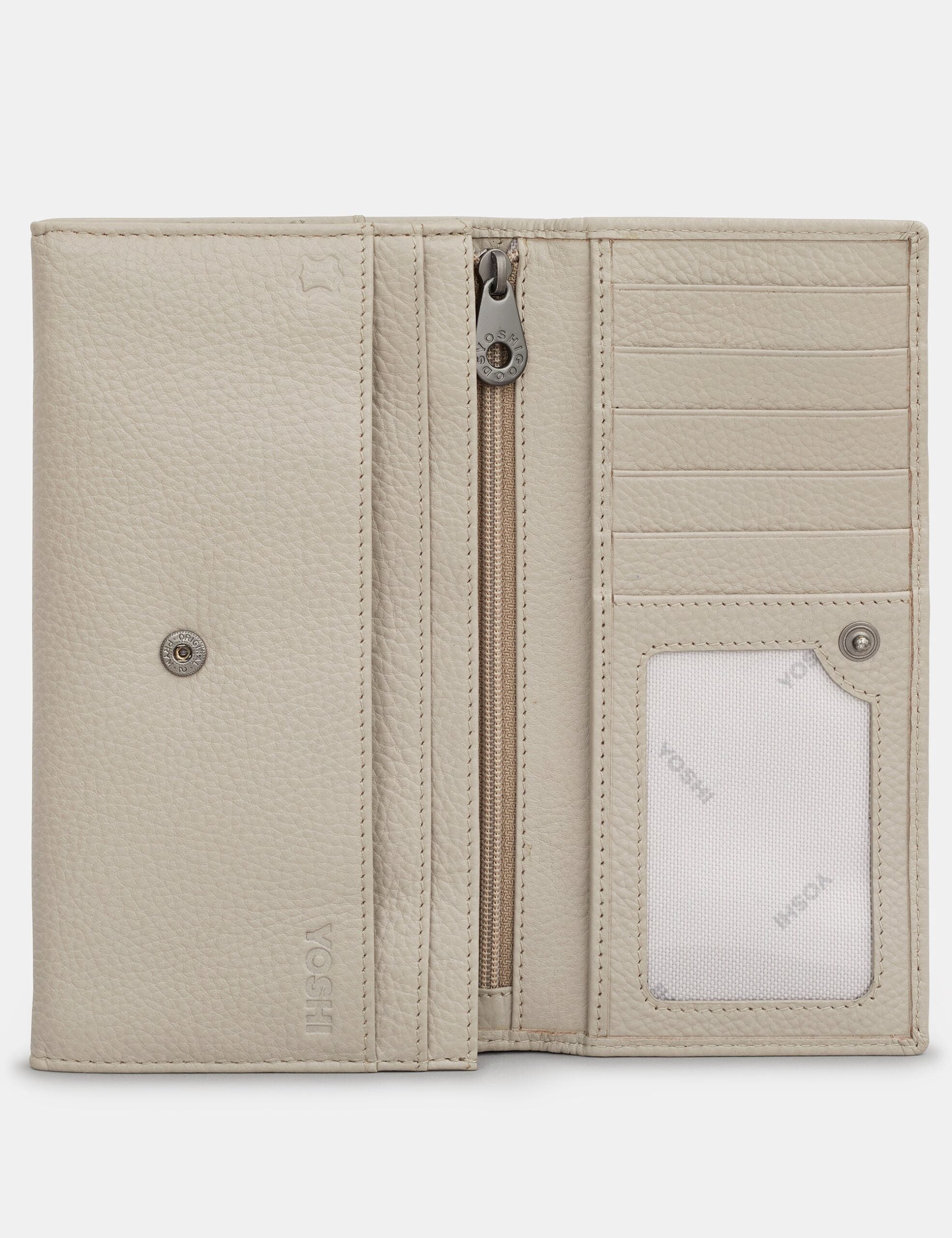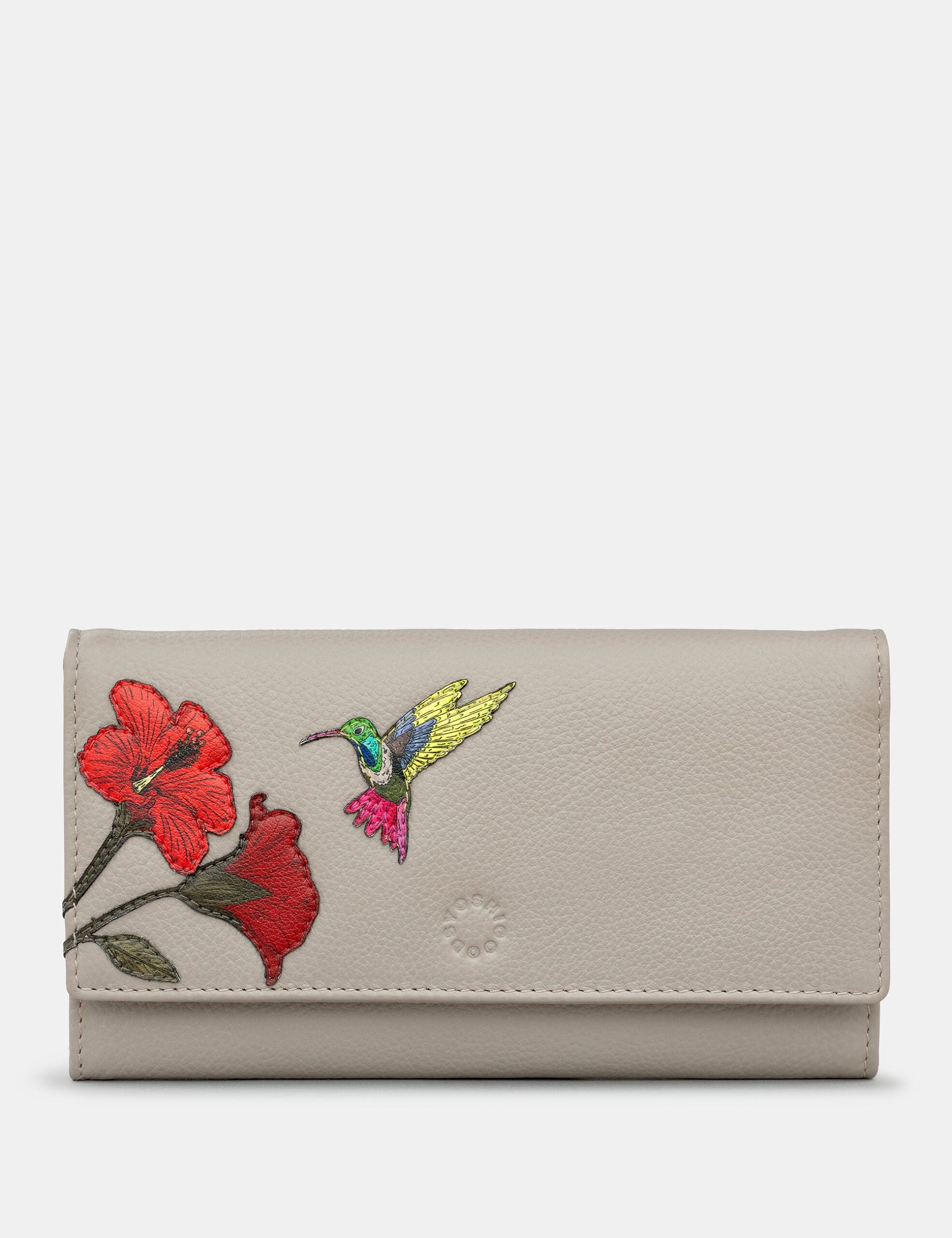 Yoshi Petal & Feather Appliqued Leather Grey Flap Over Purse Y1030 HMB 46