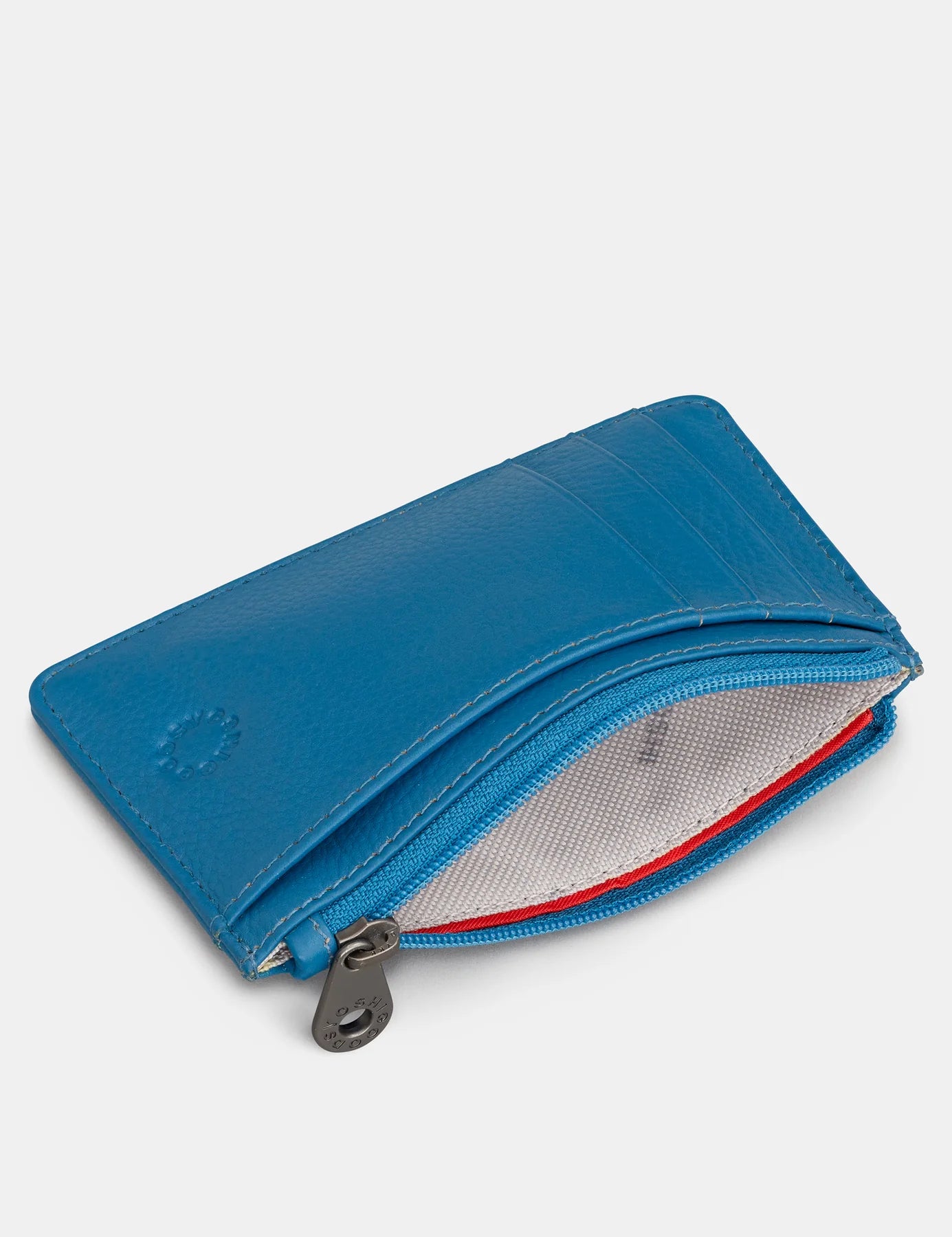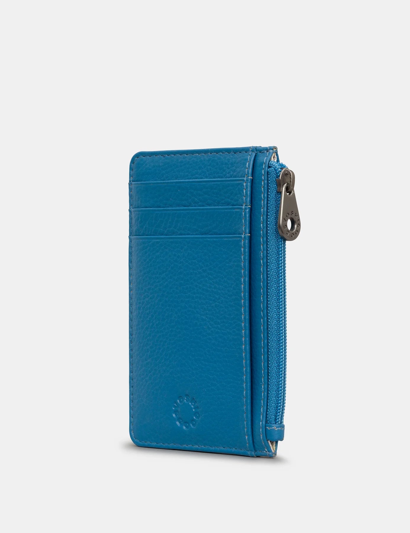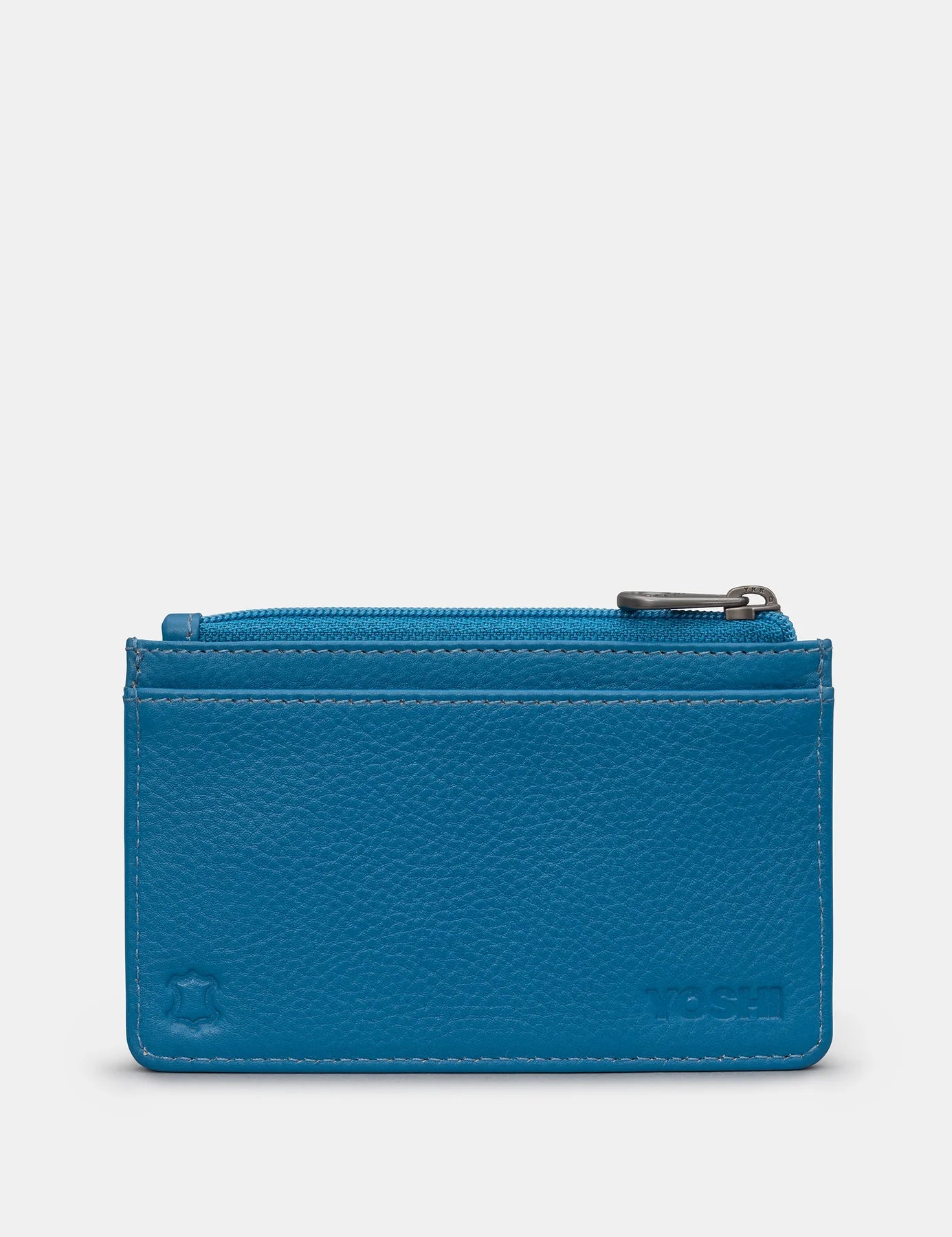 Our blue leather zip top card holder has RFID Protection and is a slimline style which fits into any pocket. It has three credit card slots, front and back 'slip pockets', and a main zipped section which is perfect for coins, notes, and extra card's etc.
