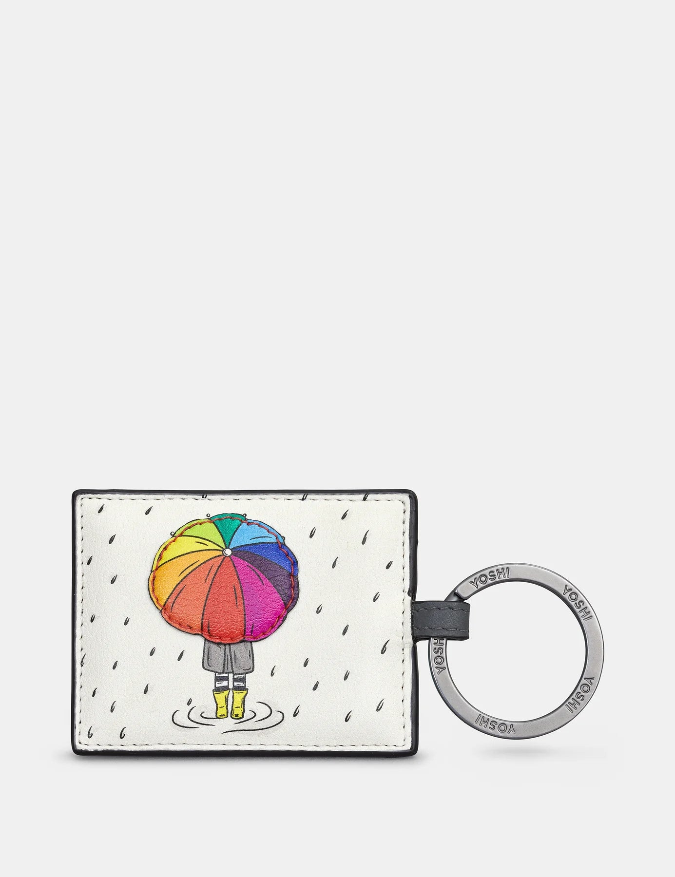 Yoshi Rain, Rain Go Away Umbrella Appliqued Leather Keyring - YKR 23 RAIN