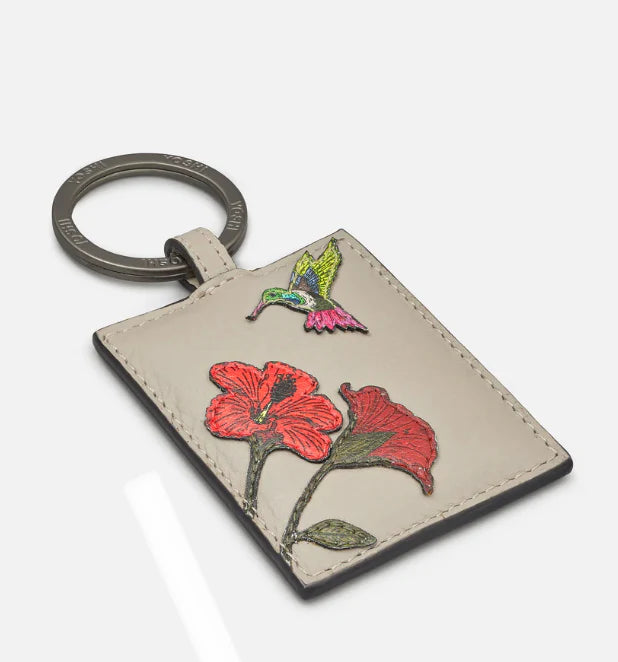 Yoshi Hummingbird Grey Appliqued Leather Keyring - YKR HMB 46